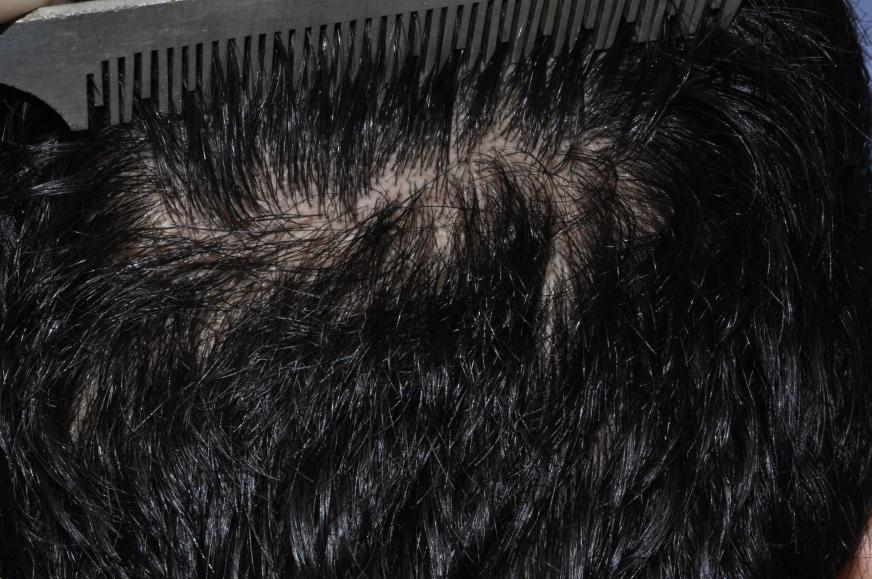 This 30's year old guy stopped in for a refill of meds...which I am not sure are doing anything as you'll see in the pics. He has limited donor hair quantity and quality...but we made the most of 2200 or so grafts a few years ago and he looks good. I wish he had thicker hairs and more of them...but that is what his parents gave him. He's getting ready to do a 2nd case, which will probably yield 1800 grafts or so and give him coverage of the frontal third. In a denser hair person, we'd hit that all in a day, but again, in his case it is not money, but donor hair, which limits his options.