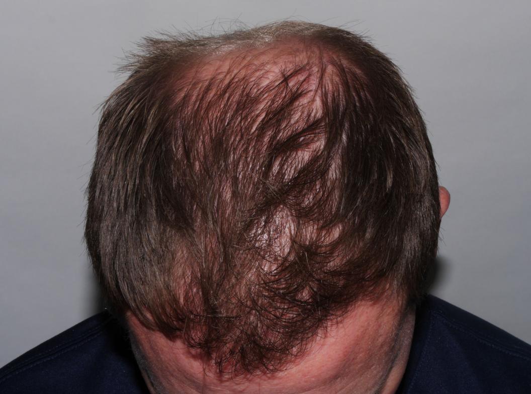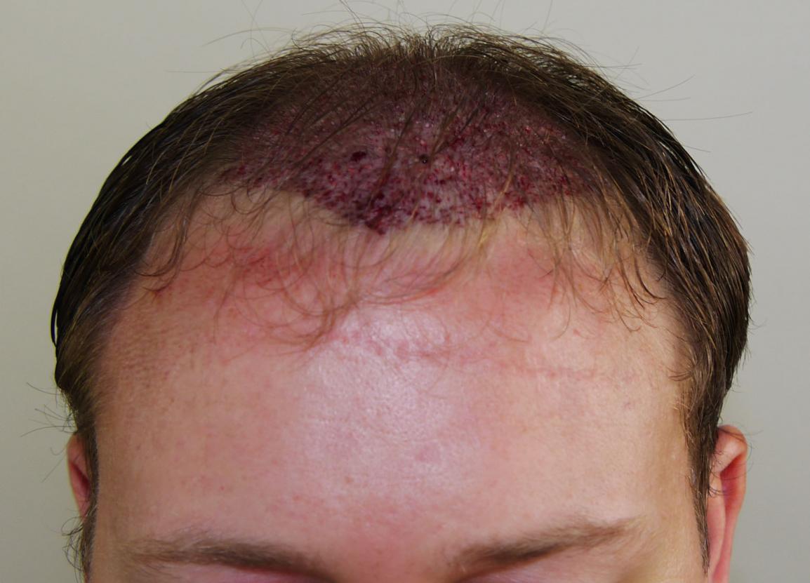This 34 year old male had 2329 FUT grafts placed in the frontal and mid-scalp areas. The photos show before, immediate post-op, and 2 years post-op. The patient is very pleased with the results of the procedure.