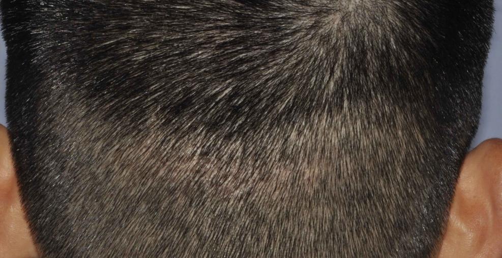 So we did 217 FUEs, shown are preop, intraop, day 4 and day 9. He's local, so hopefully he'll send pics in a month when its shed, and return to the office next year for pics. Commonly, on cases like this and eyebrows, a second "touchup" procedure is needed at a year or so to get the best results.