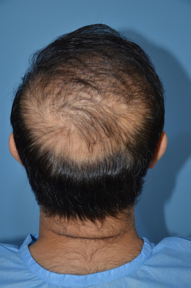 This Patient came to see Dr. Bhatti about his hair loss and presented a NW7 pattern with signs of temple point degradation. Dr. Bhatti designed a new hairline that would be very conservative and was high up enough on the scalp to not require temple point work. Dr. Bhatti and his team extracted 2415 grafts from his scalp donor region and 432 grafts from his beard below his jawline. The result you see is one year after the procedure as he returned to get his crown area addressed.
