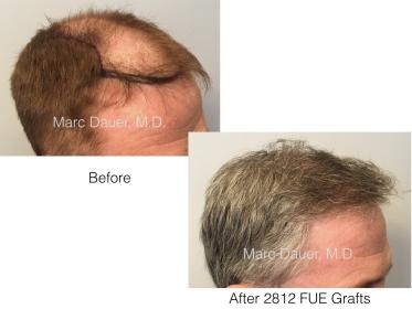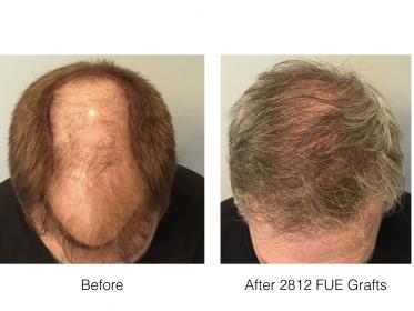 Here is a patient of mine who received 2812 grafts via FUE in a single procedure. The results are shown after 10 months so the patient should see some slight increased density over the next few months. I personally extracted every graft using a 0.8mm punch tip. The patient is thrilled with his results at present and plans to return in the future for some increased density.