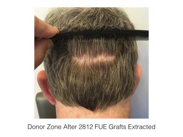 As you can see from the photo of the patient's donor region the dots from the FUE are almost invisible because of the small size of the extraction tip and the extraction technique.