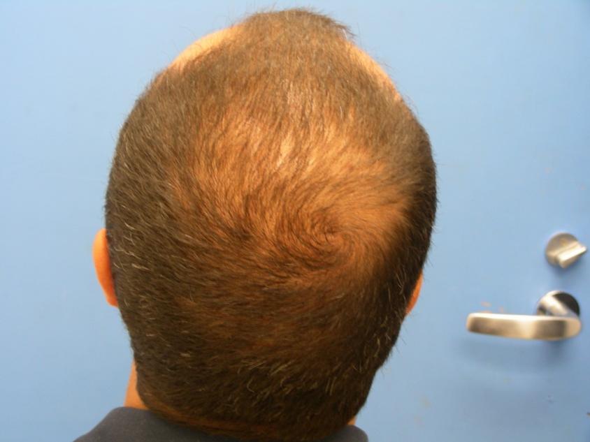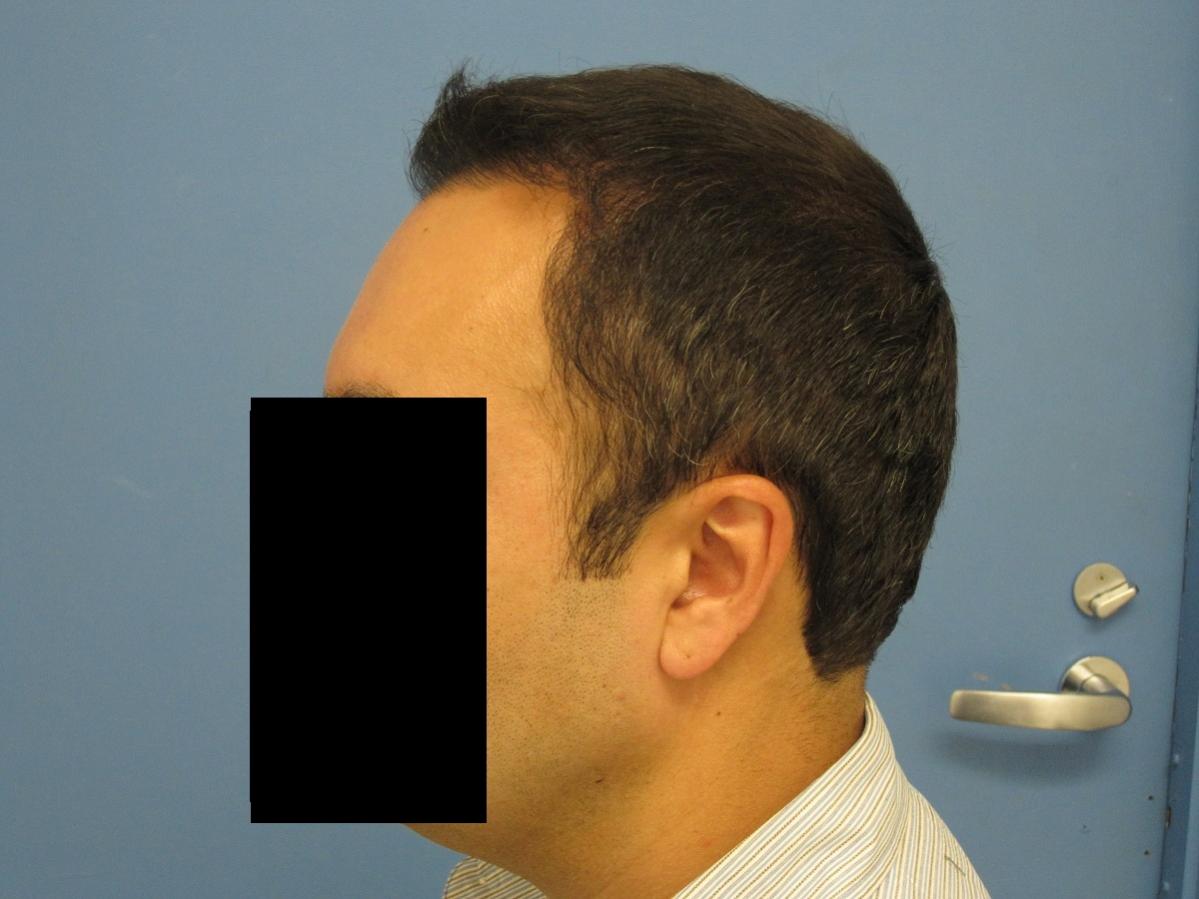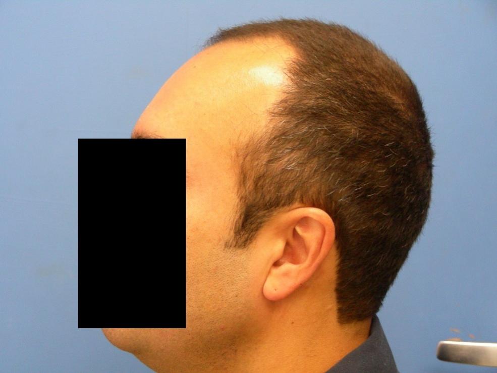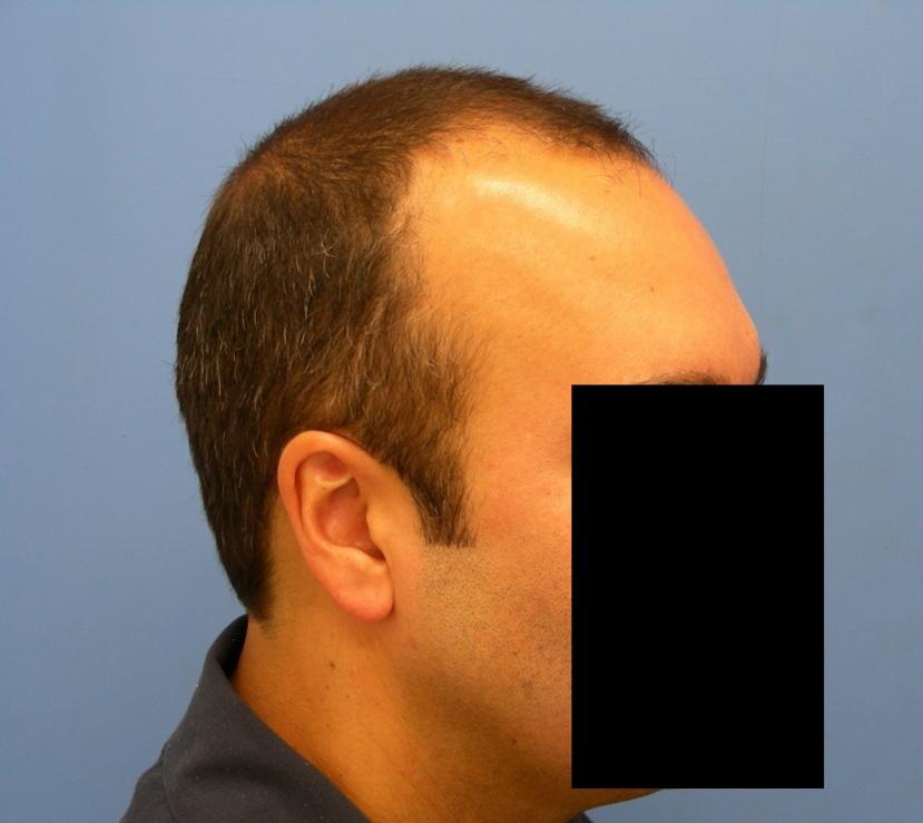 This patient came to see Dr. Hasson roughly 18 months ago to receive as much of a cosmetic improvement as possible in one session. 5237 grafts were used to reconstruct the hairline and the frontal half with relatively high density. The crown received no attention but does show improvement with finasteride since he began taking the medication when he had the procedure.