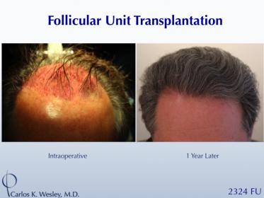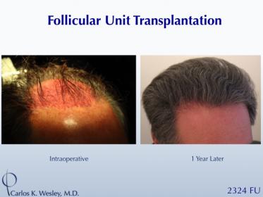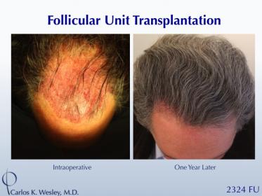 This 58-year-old man underwent a follicular unit transplantation (FUT) session with Dr. Carlos K. Wesley in which a total of 2324 grafts were placed.