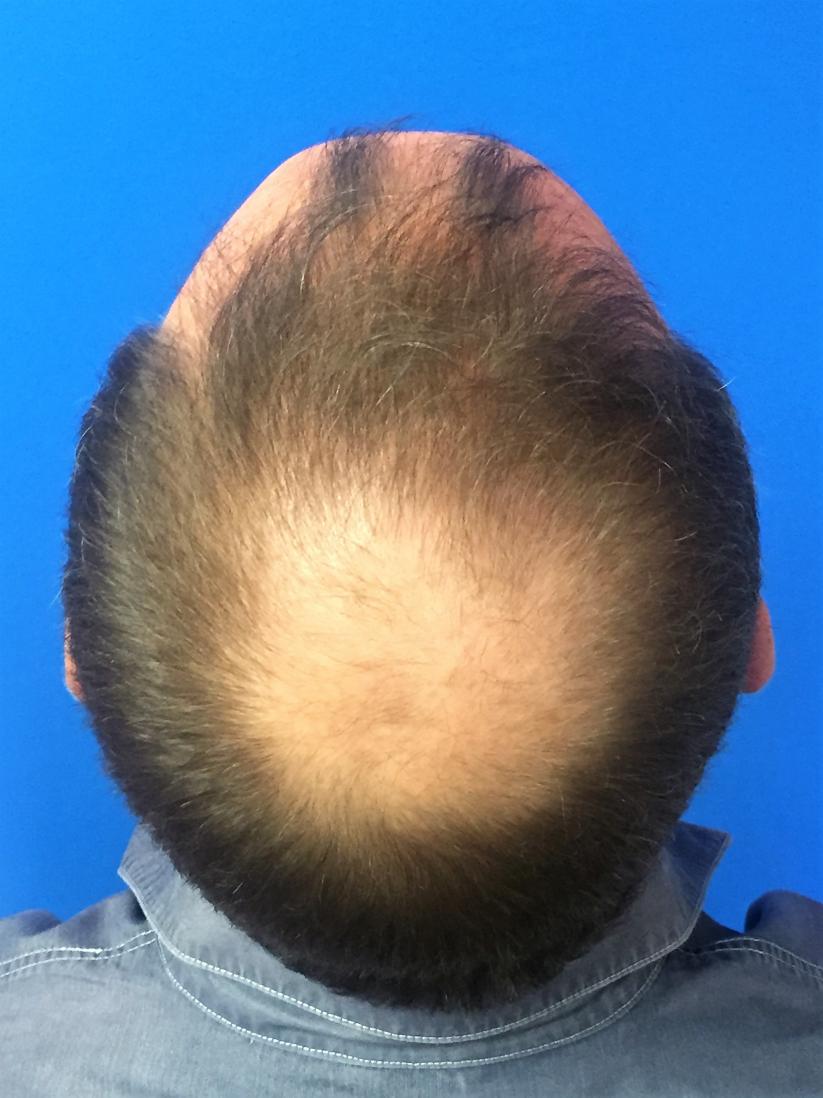 This 44 year old male patient had one Hair Transplant of 2810 follicles to front and crown regions. Photos are before and 6 months post-op.