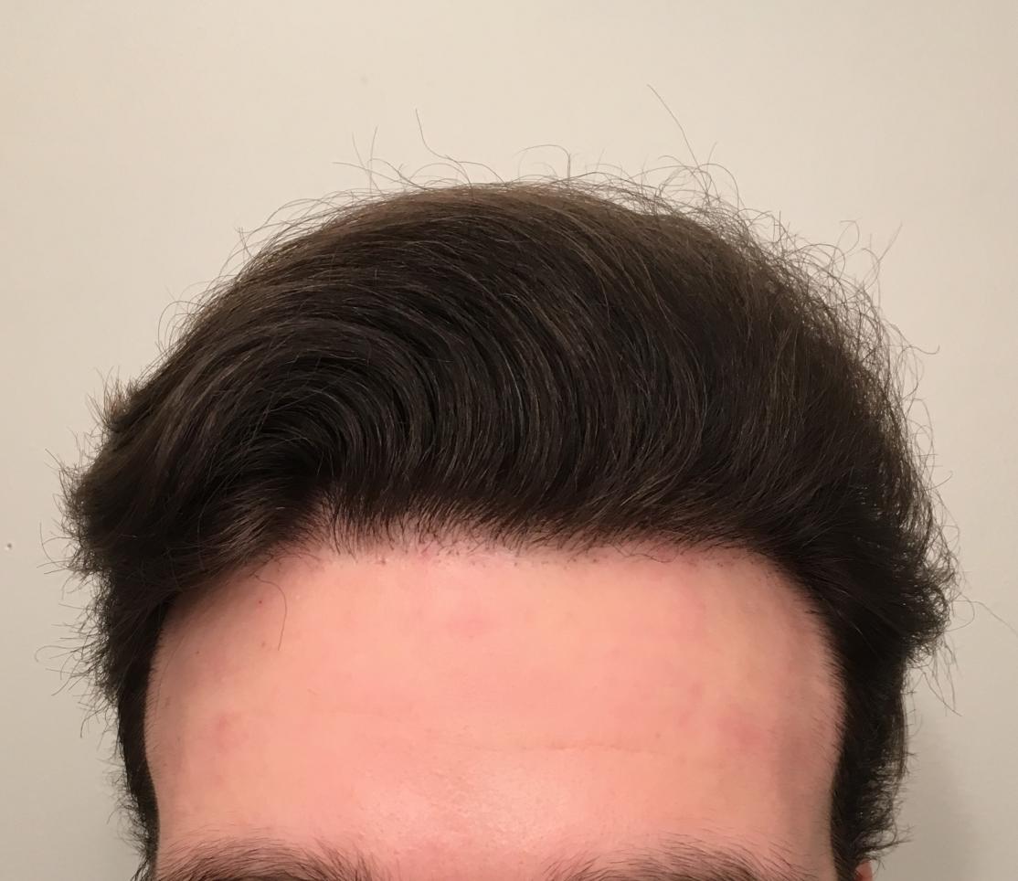 The goal of the repair was to remove the grafts that were placed too low (especially the multi-hair units) redesign the hairline and add density further back behind the previous work. He had lost hair since his previous surgery.