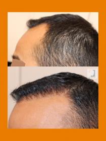 This patient came to us with the goal of temple restoration. The surgery was FUE by FIT, a method involving the transfer of single follicular unit hair grafts an no linear scarring. The growth is acceptable at only six months post-op. We are optimistic that the coverage will improve over the next few months.