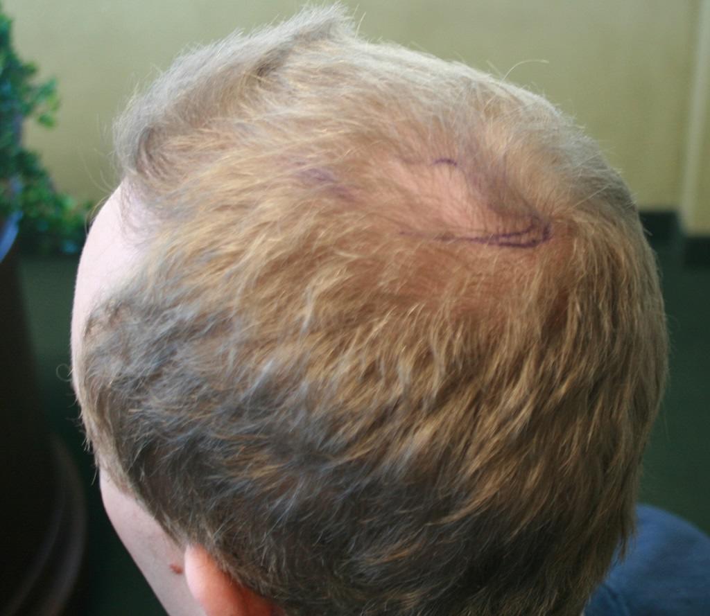 The patient had a FUT session with 2135 FU. Patient also tweaked his crown with a 150 FU. Patient is on finasteride.