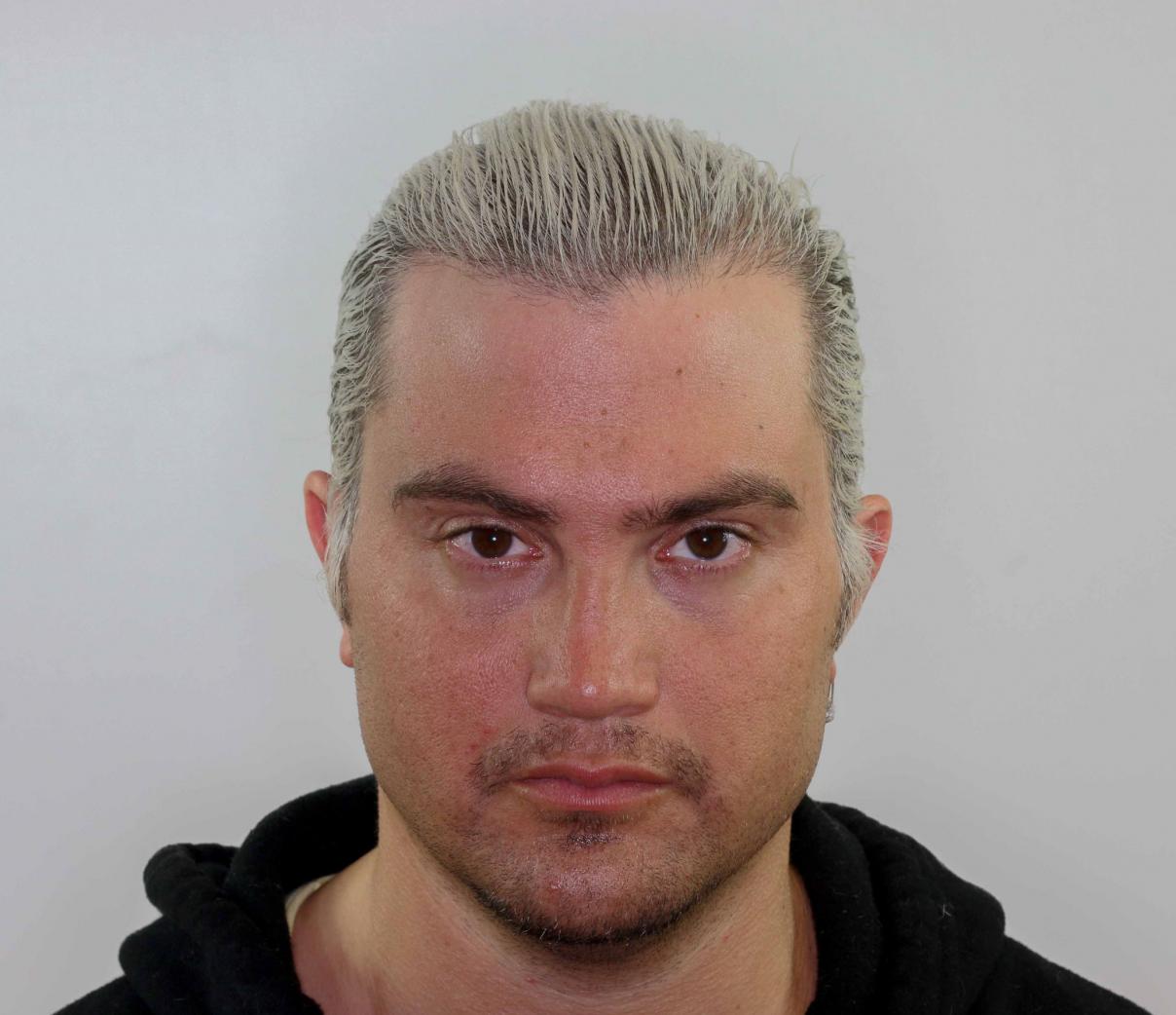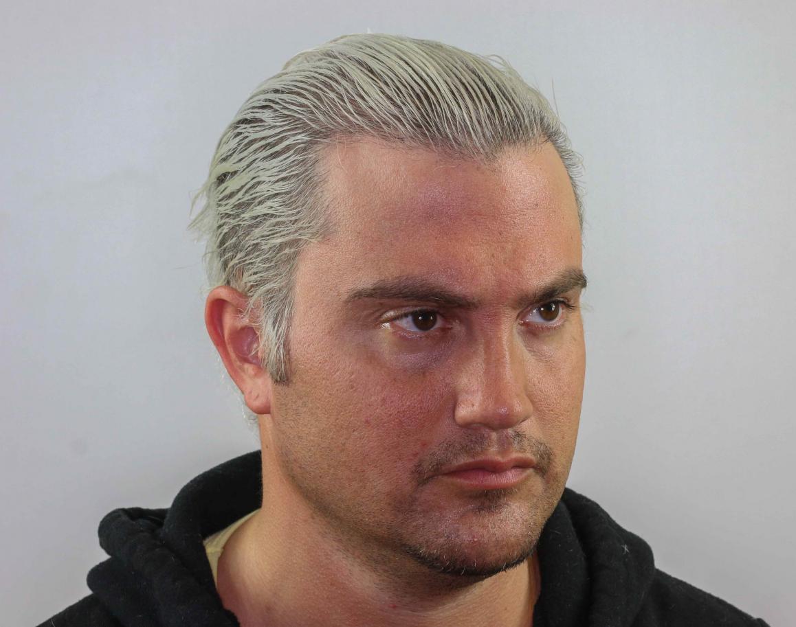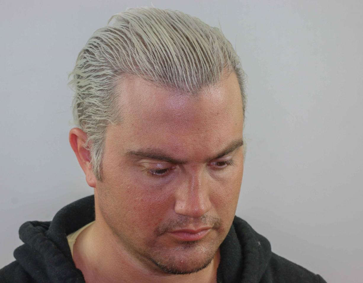This patient had temple recession and diffuse thinning up the middle. He had an FUE Hair Restoration of 3,527 grafts FUE with Dr. Baubac Hayatdavoudi to lower his hairline, close his temples, enhance temple points to frame his face, and restore his frontal region as well as right up the middle through the mid scalp with grafts placed all in between his existing hairs up the middle.