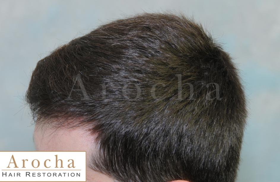 This young man came to see us for help with his receding hairline and thinning in the frontal area. Dr. Arocha performed a 2000 FU procedure to restore the framing of his face, and increase the density in the frontal scalp area. He returned after more than one year post-transplant for a follow-up visit. He is ecstatic with his results, stating that even when he was a teenager, before he ever had hair loss, his hair "just never laid down" as well as after his hair restoration.