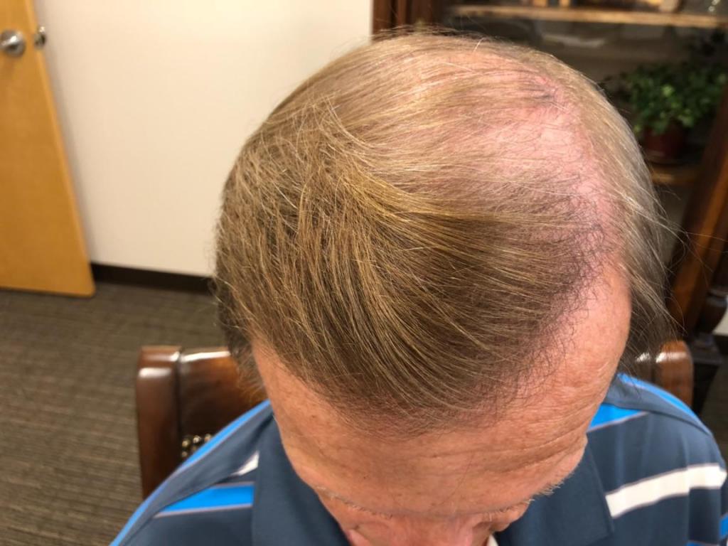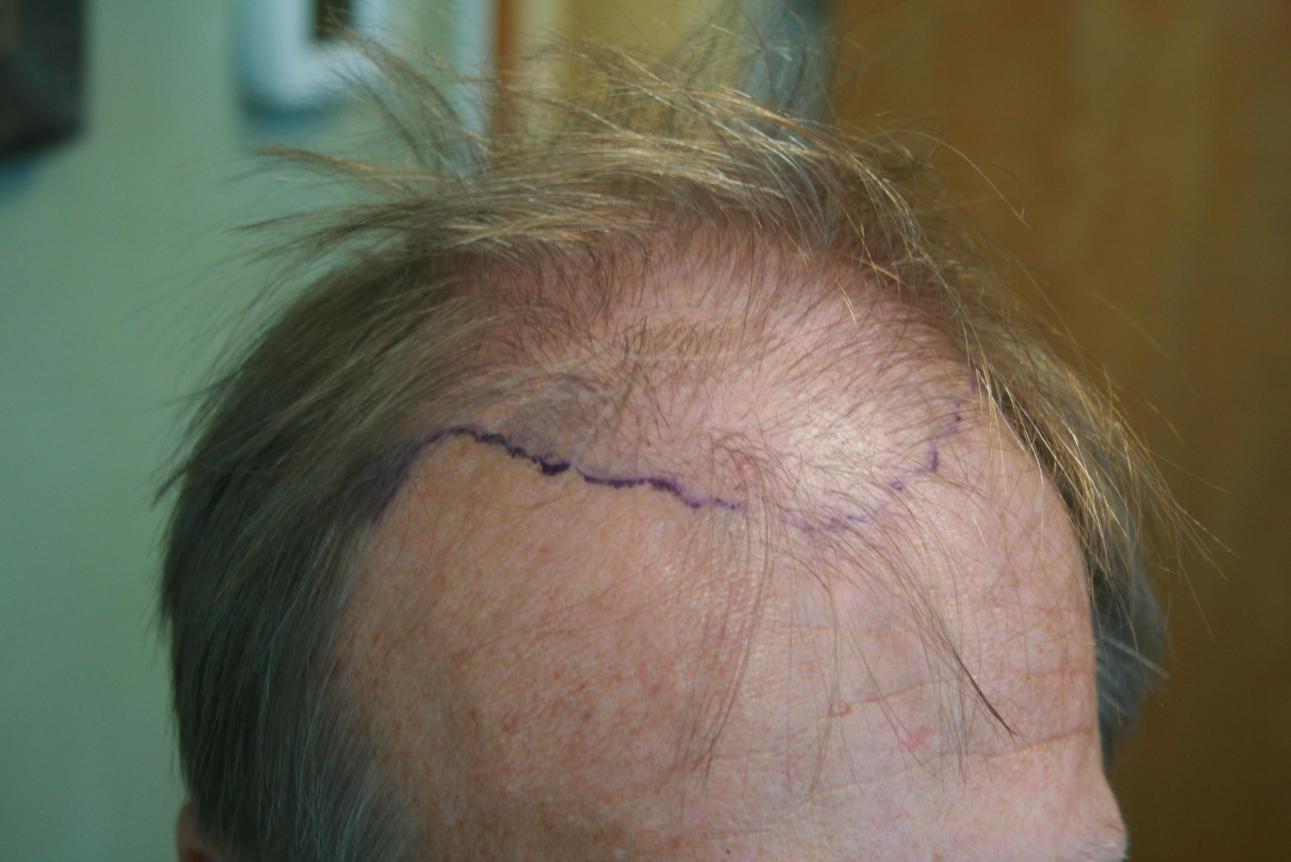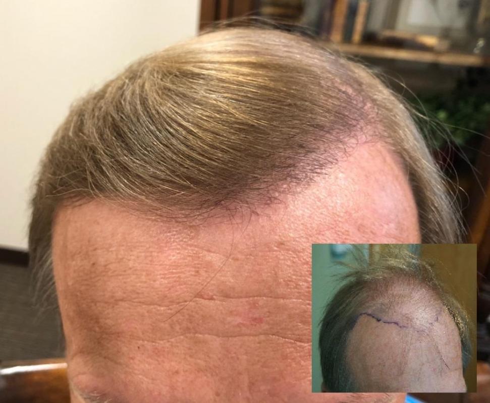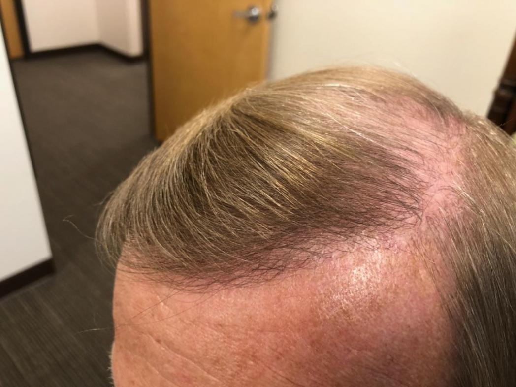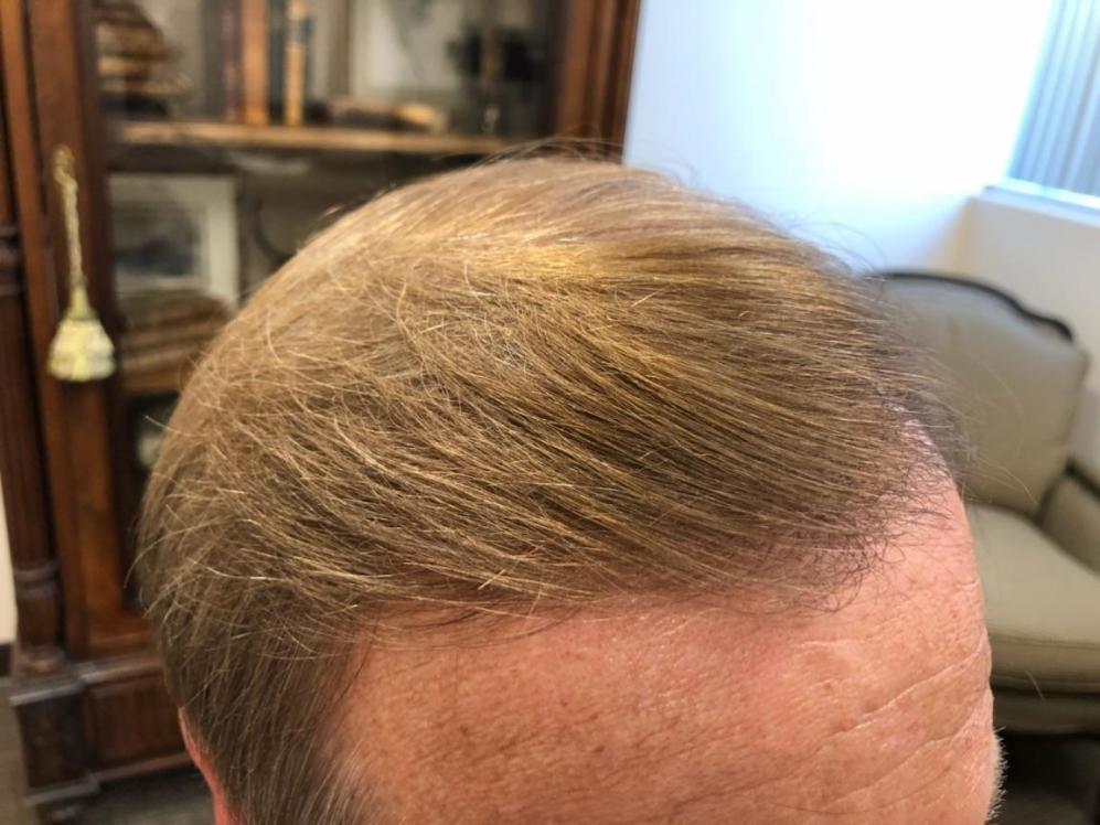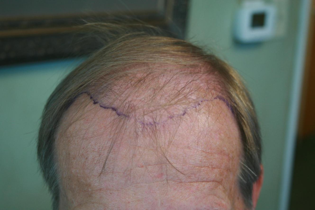 This patient came to Dr Alexander to repair a poor surgery he had performed locally a couple of years ago. The patient luckily has good donor hair but its very thin characteristic as you can see. Fine hair provides great naturalness but you need a lot of it. The patient is thrilled and intends to return for surgery in a couple of months to address the crown region and thankfully has donor hair to work with despite his botch job prior to Dr Alexanders first FUT session a year ago.