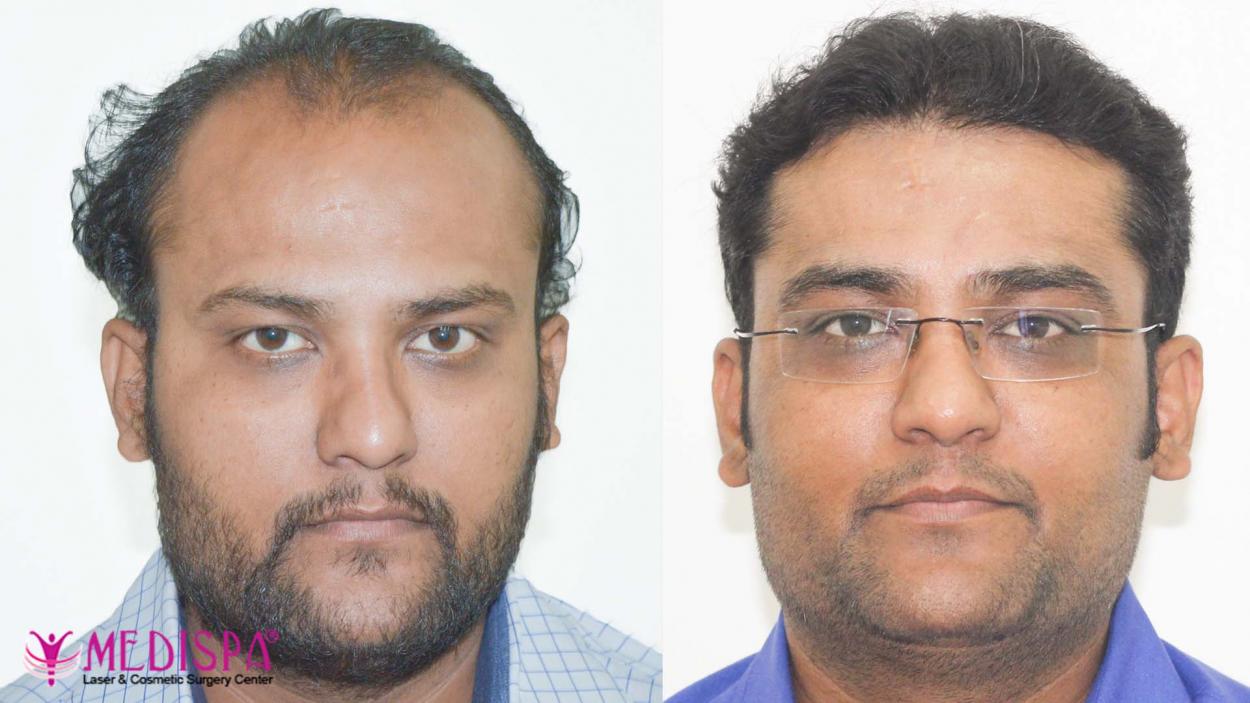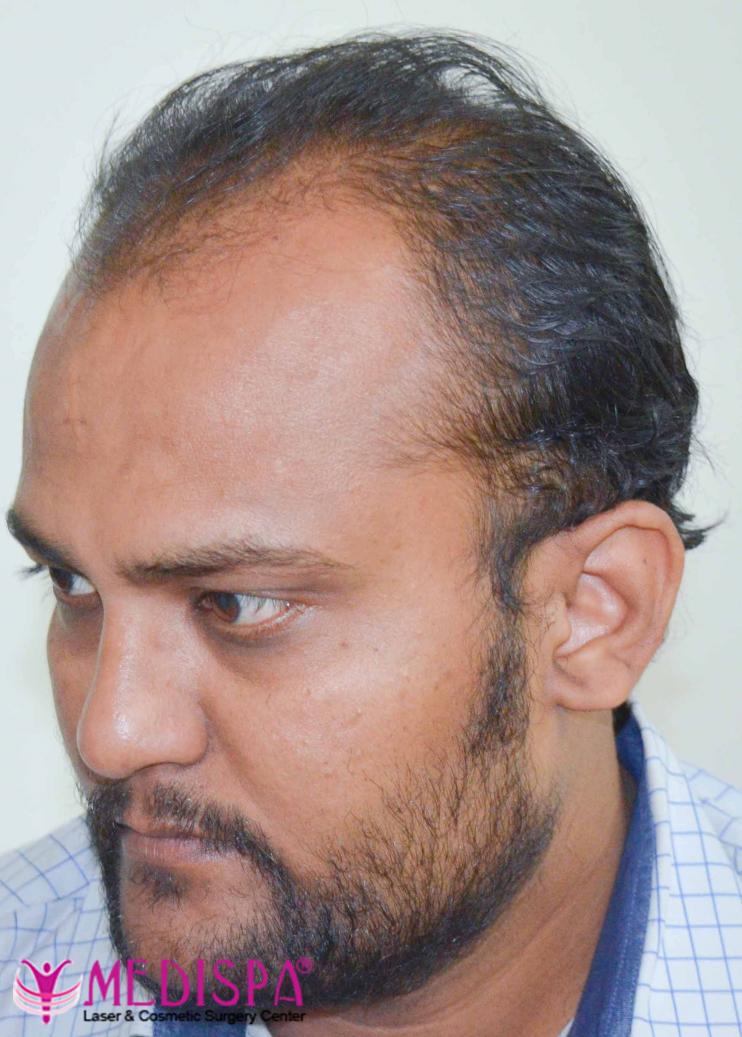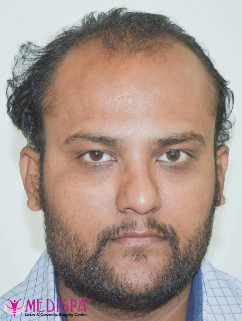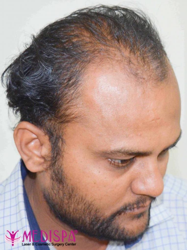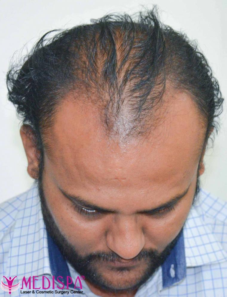 A 36 years old patient, suffering from genetic baldness.