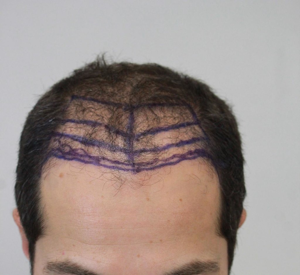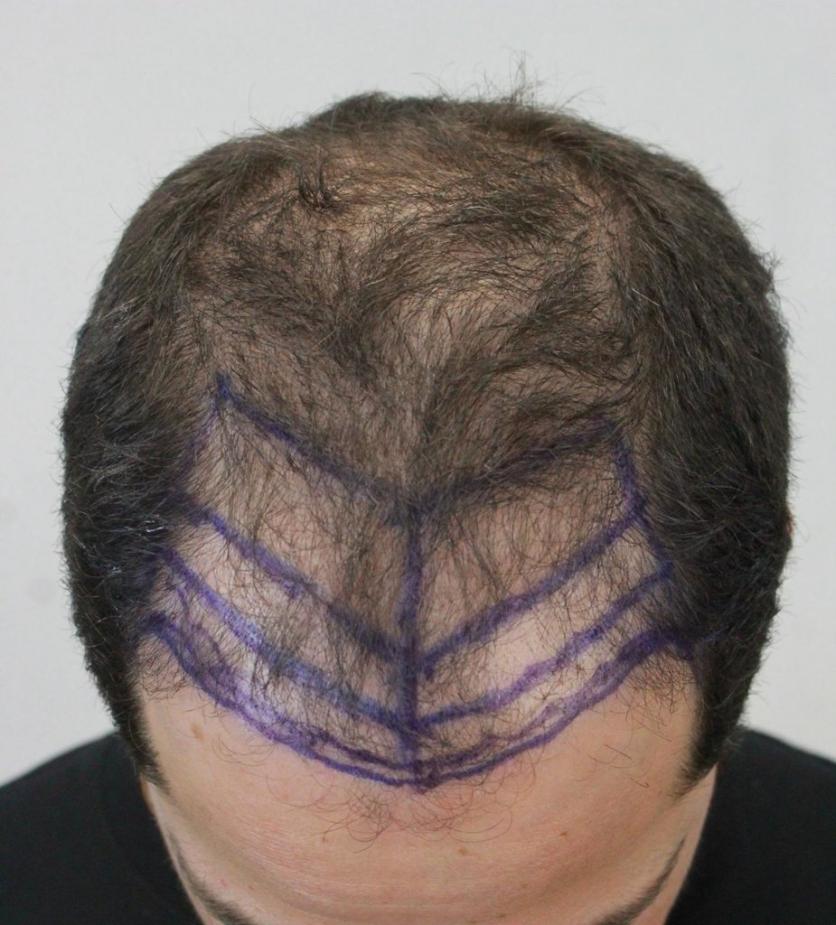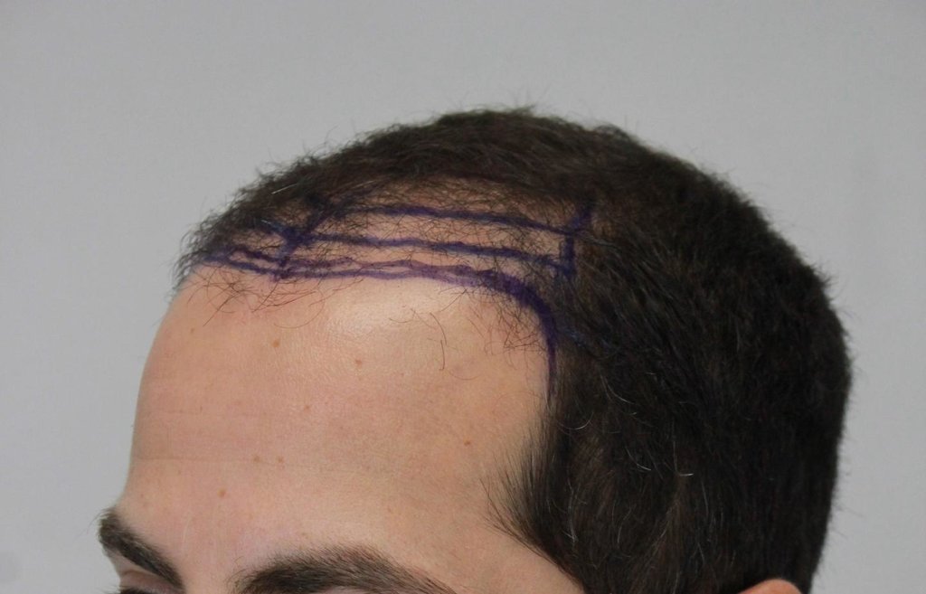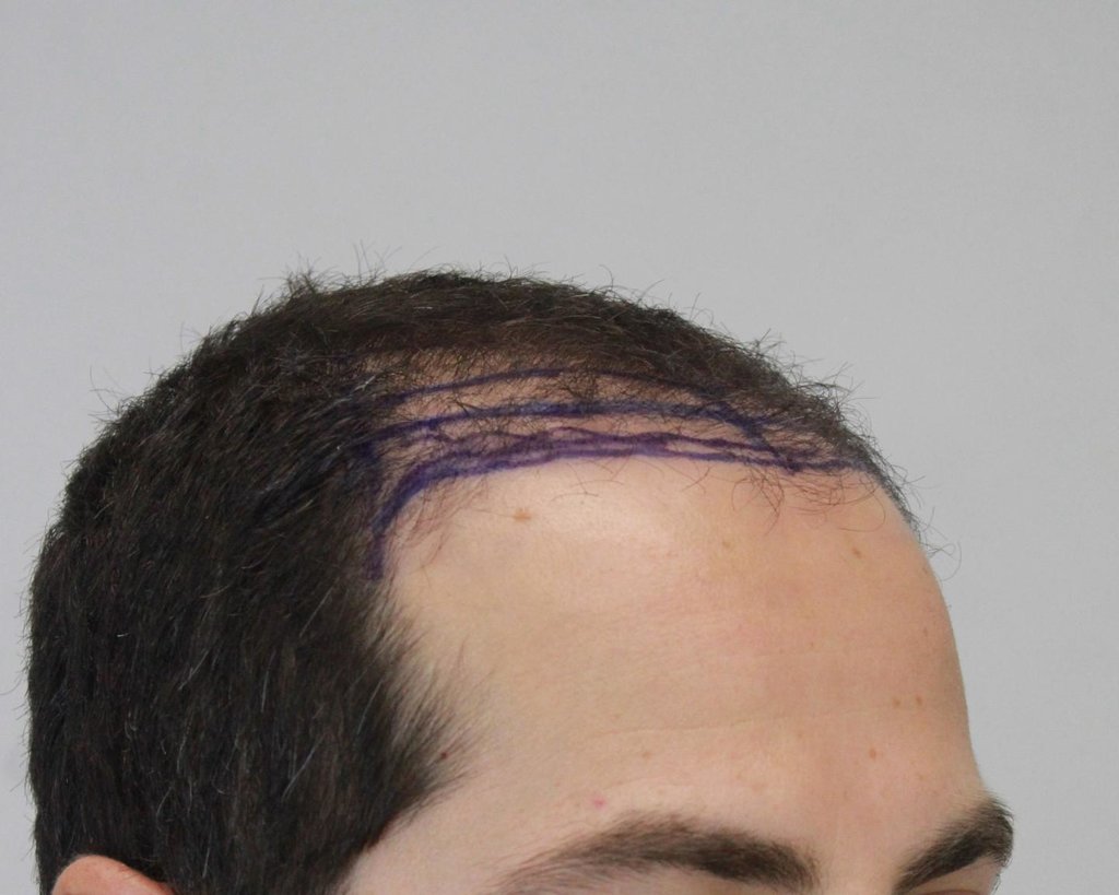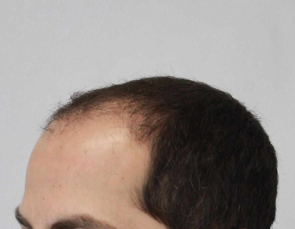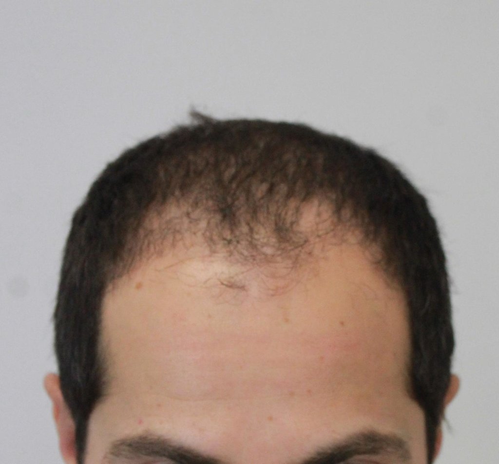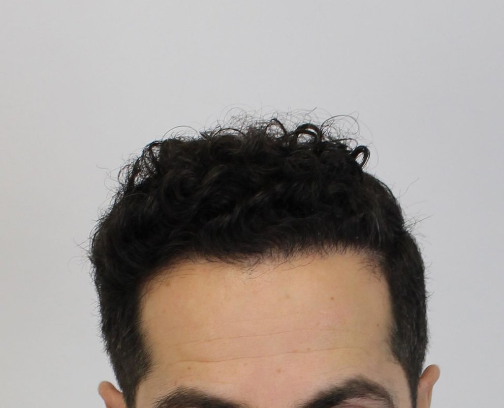 This patient is age 35 and wanted to restore his hairline (including temple closure) and add density to his frontal zones. He opted for FUE. A great example of how good hair characteristics, together with skilled placement, can make the grafts cover a larger area with satisfying density. The patient also has above average donor density.