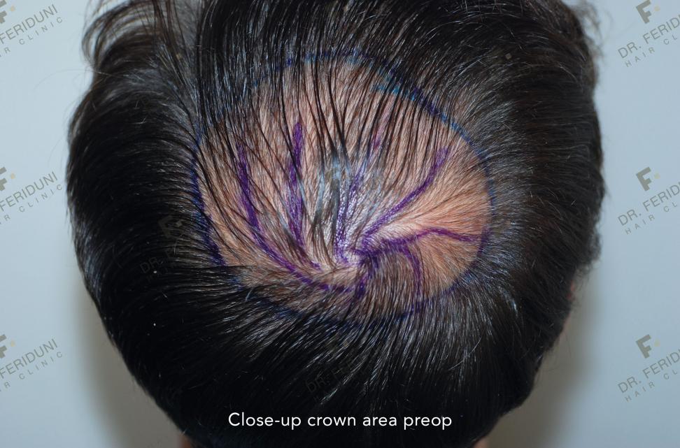 2. Follicular Unit Extraction to restore the crown area.