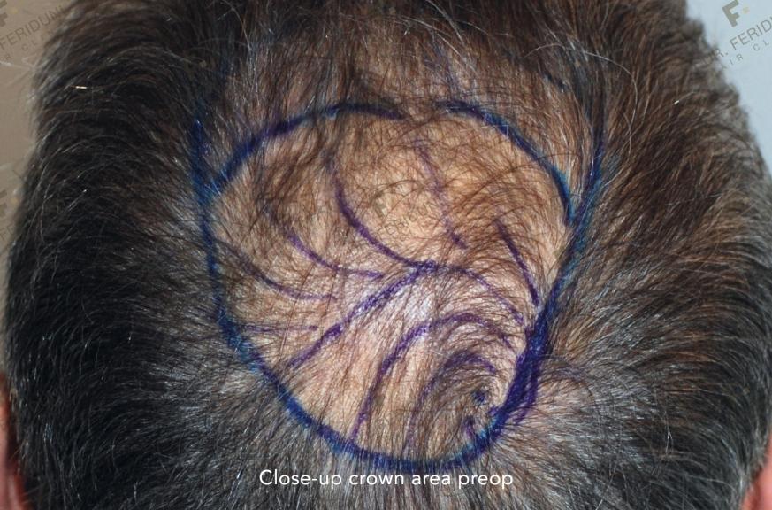 Follicular Unit Extraction to reconstruct the crown area.