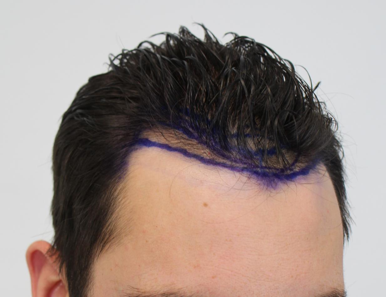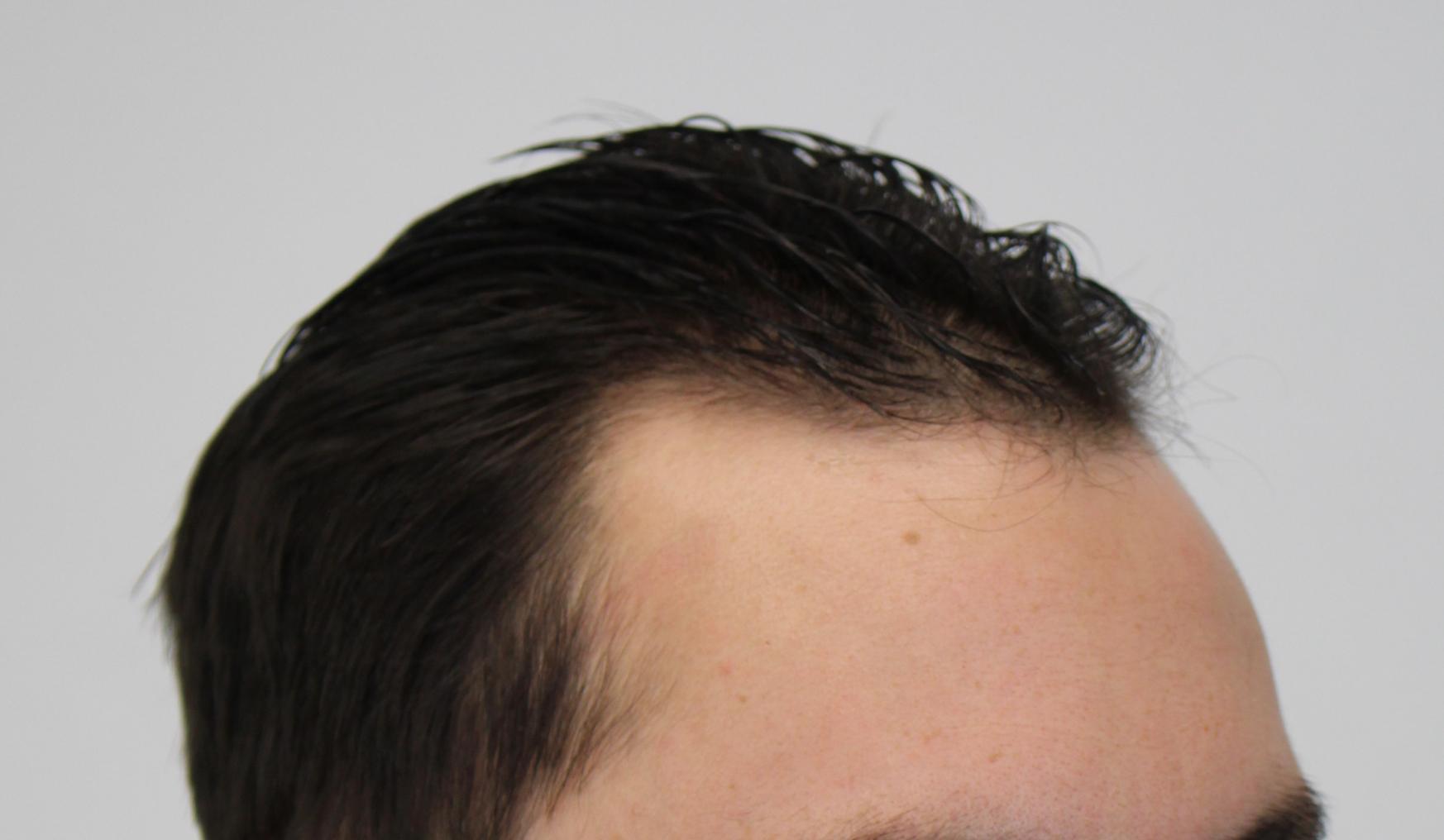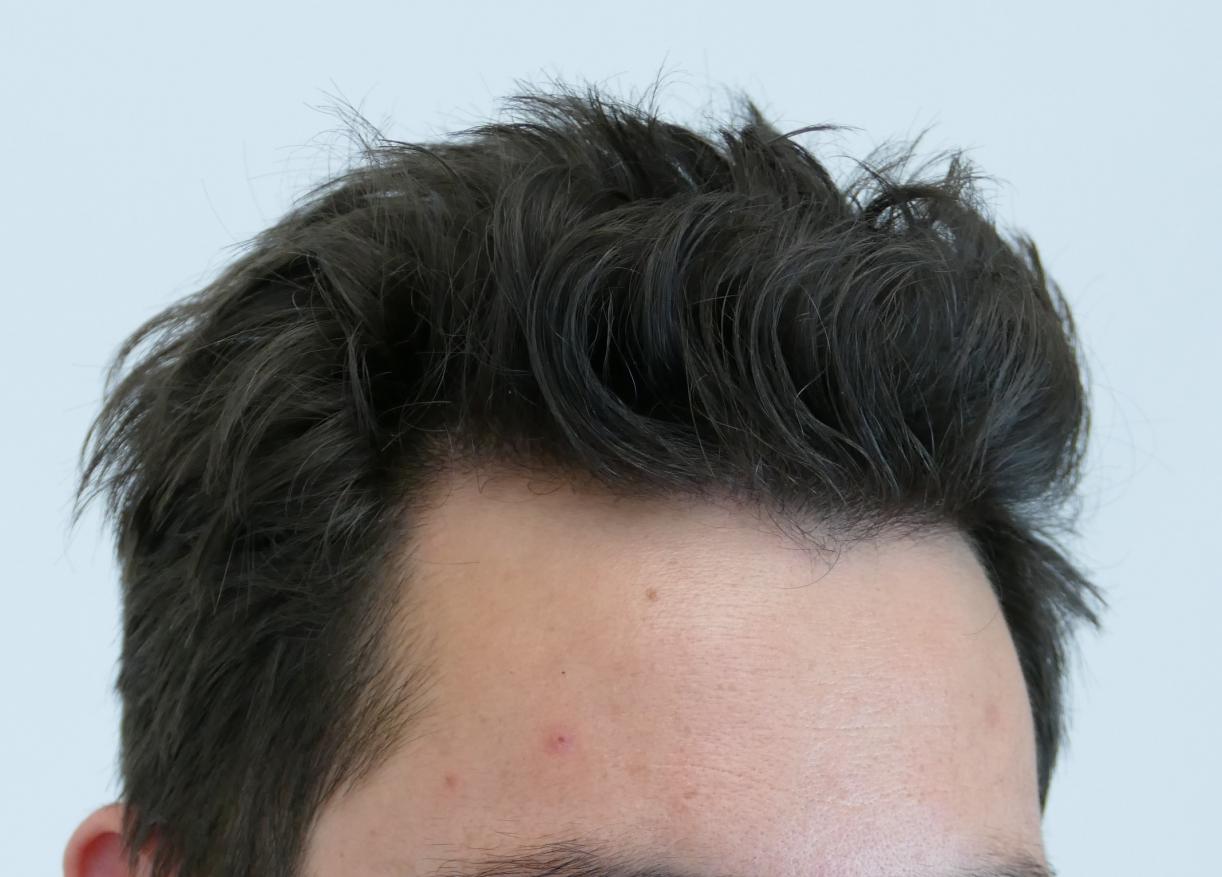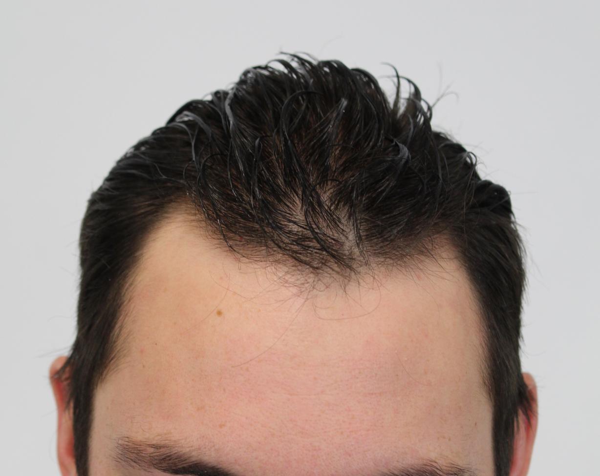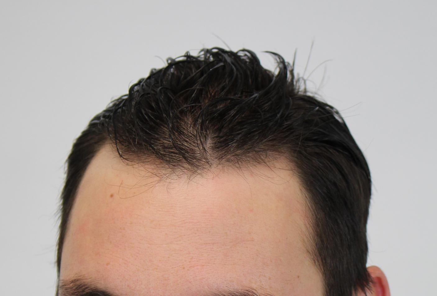 Dr. Rahal designed a hairline without dropping the front, and adding density and adjusting the lateral temple angles part of the hairline. This allows more styling options.
