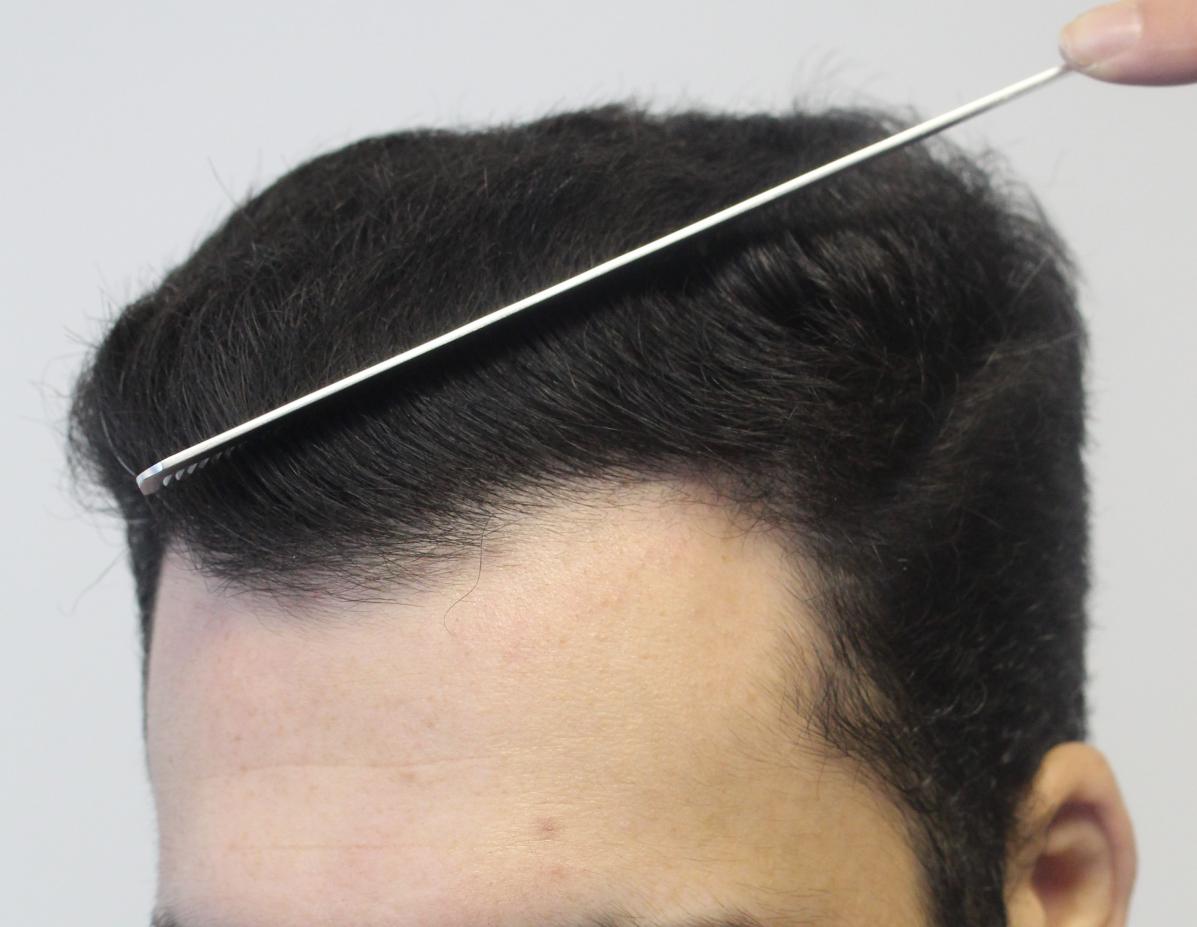 Dr. Rahal designed a hairline to fill in the recession and to add density to mid front.