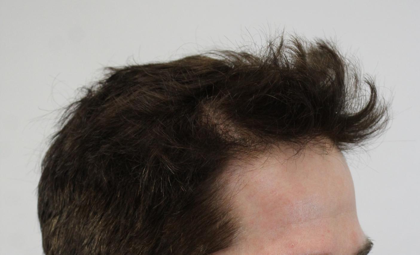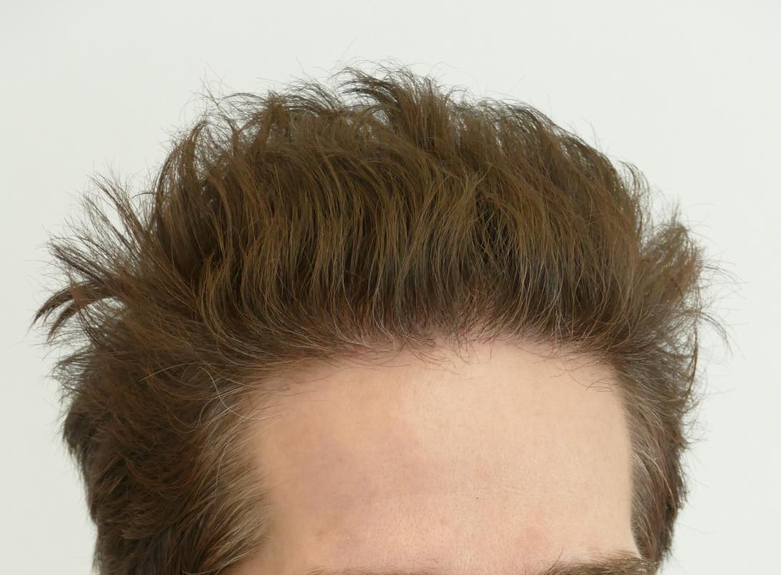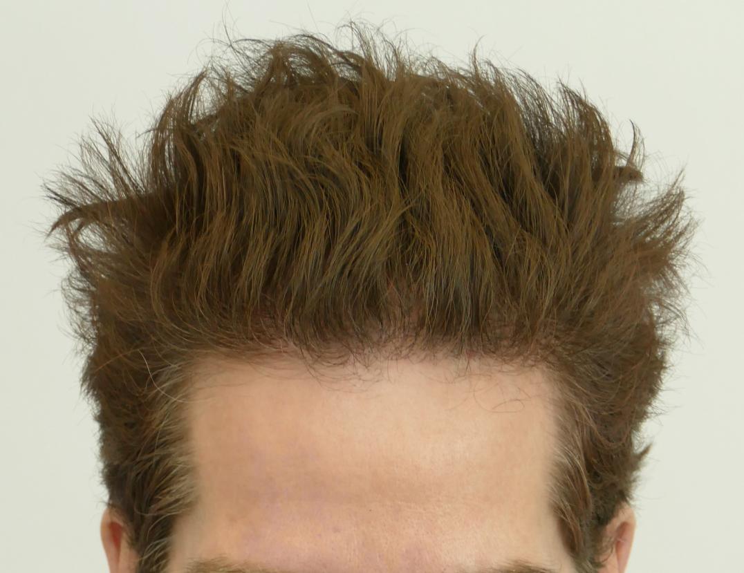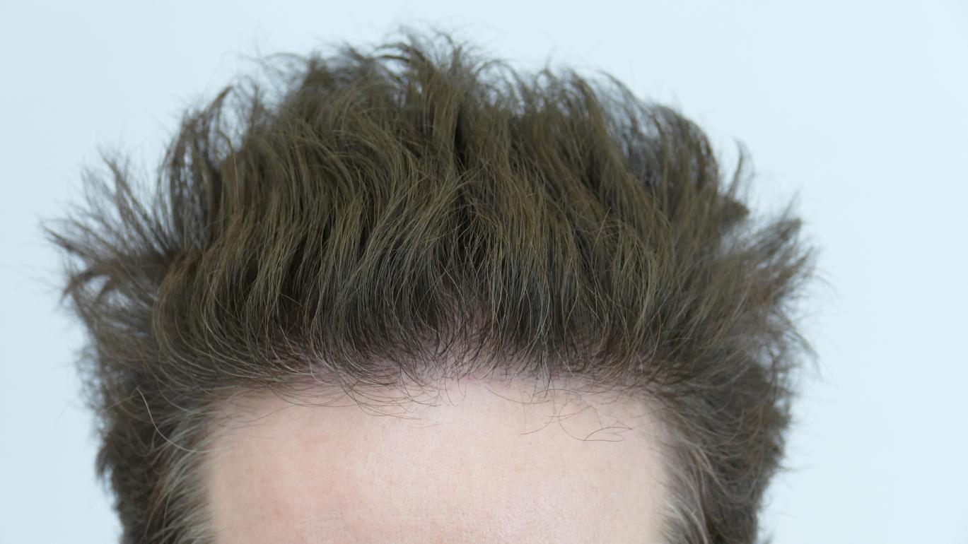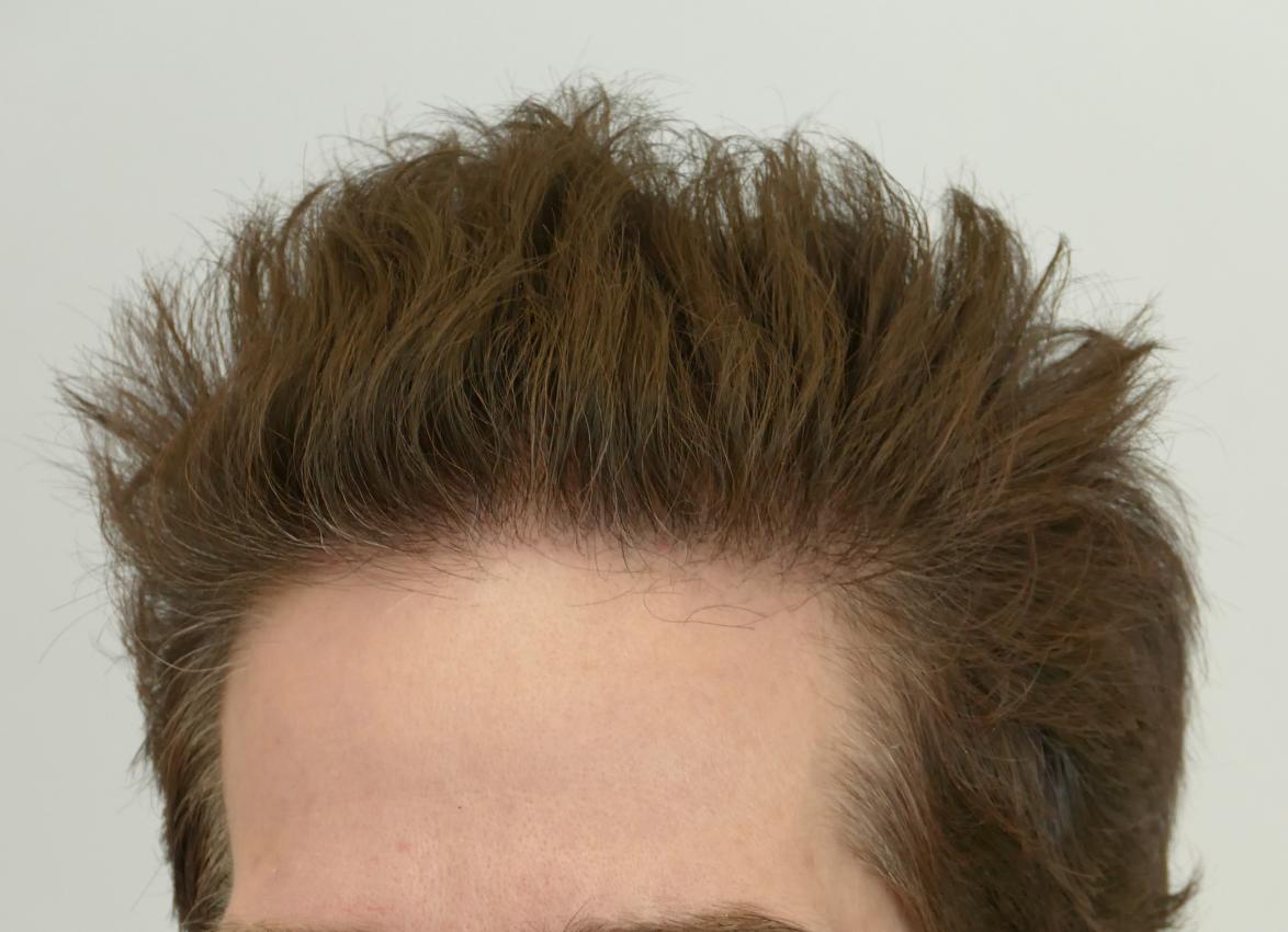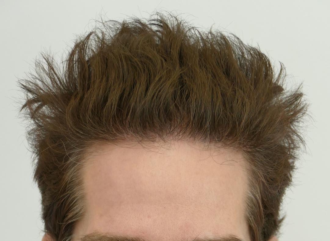 46 year old patient came in to restore his receded hairline and front area. He was headed to an isolated forelock with time. Dr. Rahal designed a hairline without dropping the front and adding density and adjusting the lateral temple angles part of the hairline, as well adding grafts behind the forelock. This created more uniformity and thus allows more styling options.