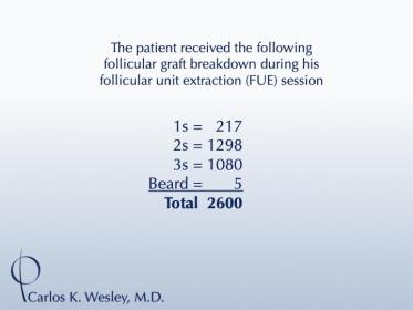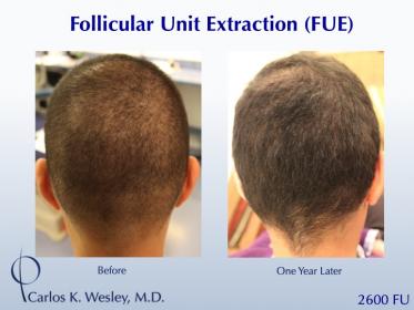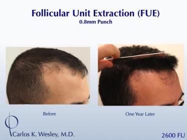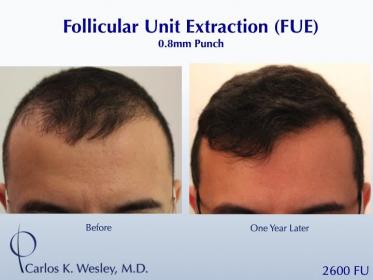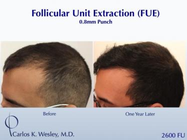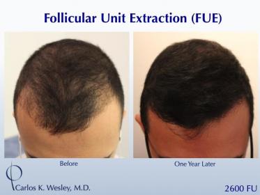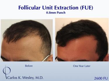 This patient underwent a follicular unit extraction(FUE) session with Dr. Carlos K. Wesley in which a total of 2600 grafts were placed.