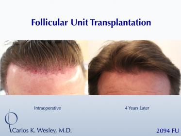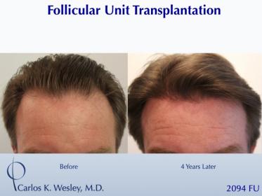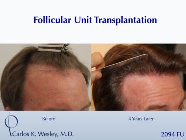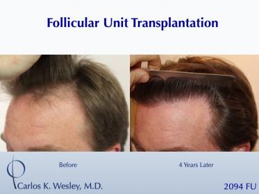 This patient man underwent a follicular unit transplantation (FUT) session with Dr. Carlos K. Wesley in which a total of 2094 grafts were placed.