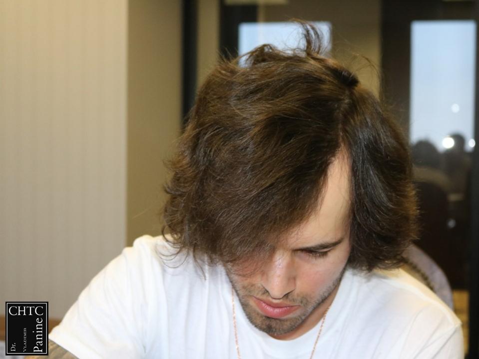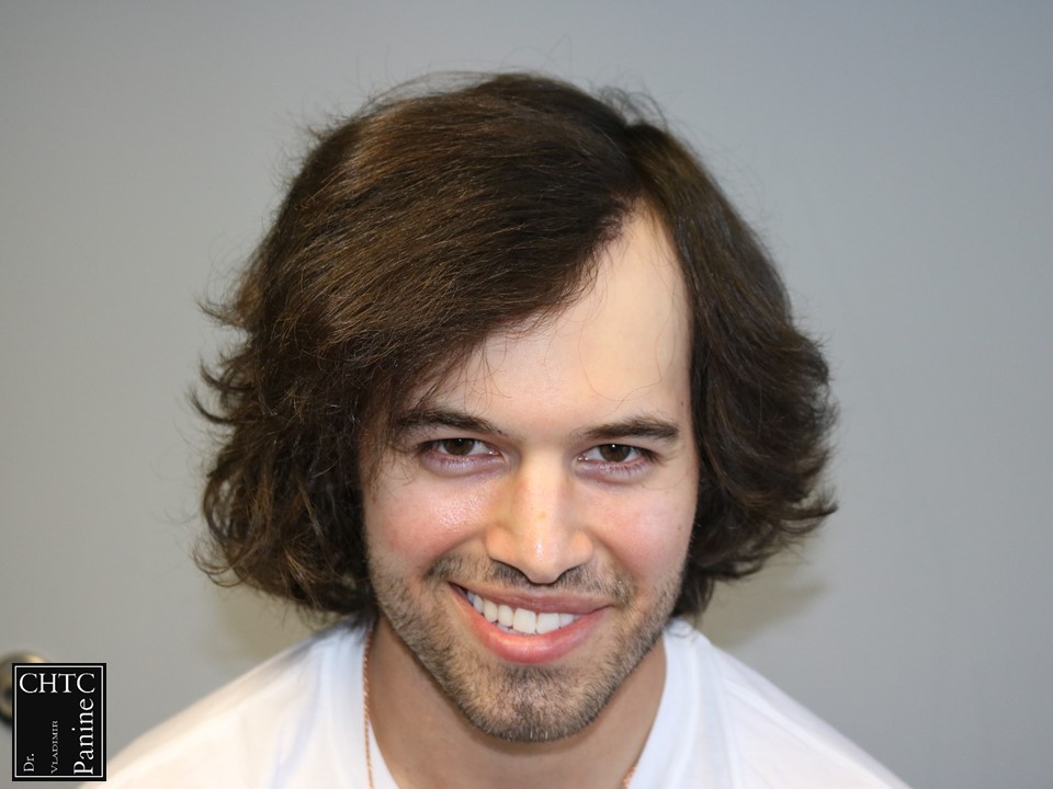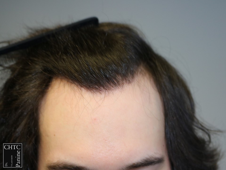 This 28-year-old gentleman had a hair loss pattern similar to a class 4 on the Hamilton Norwood hair loss scale. His goal was to rebuild his hairline and add density to the frontal 1/3-1/2 of his scalp. Taking his age and hair loss into consideration we came upon an agreement for what would satisfy his expectations. After establishing his medical history and understanding the progression of his hair loss, I diagnosed his condition as Androgenetic Alopecia (male pattern baldness), ruling out any other possible dermatological or medical conditions which can cause hair loss. The patient’s goal was well suited to his needs and therefore I planned the surgery accordingly. I wanted to reconstruct a hairline that would be suitable for him as he continued to age. A total of 3,050 grafts were used. I used a significant amount of single hair follicular units which allowed me to create a very natural hairline. This action will allow him to comb his hair without anyone detecting that he has had anything done. These are his results 15 months post op. The patient is extremely happy with his results and is on Finasteride to try and control further hair loss.