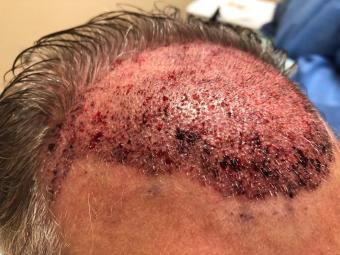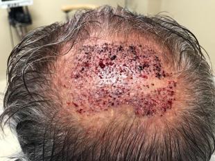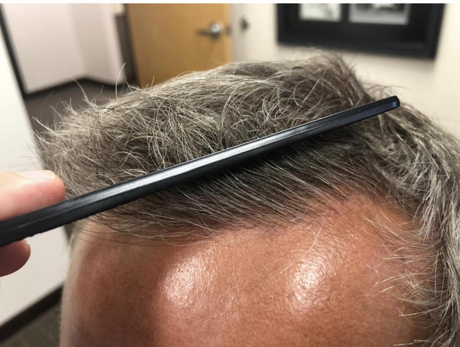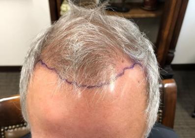This patient is 45 years old and came to Dr Alexander 6 Months ago and received 3498 FU VIA strip - 3498 FUT (2898 Front, 600 Crown) The patient is growing in well at the half way stage and very happy with the result - and should be ! Very natural and thicking up well !