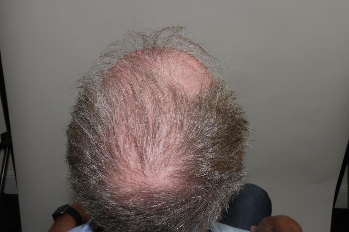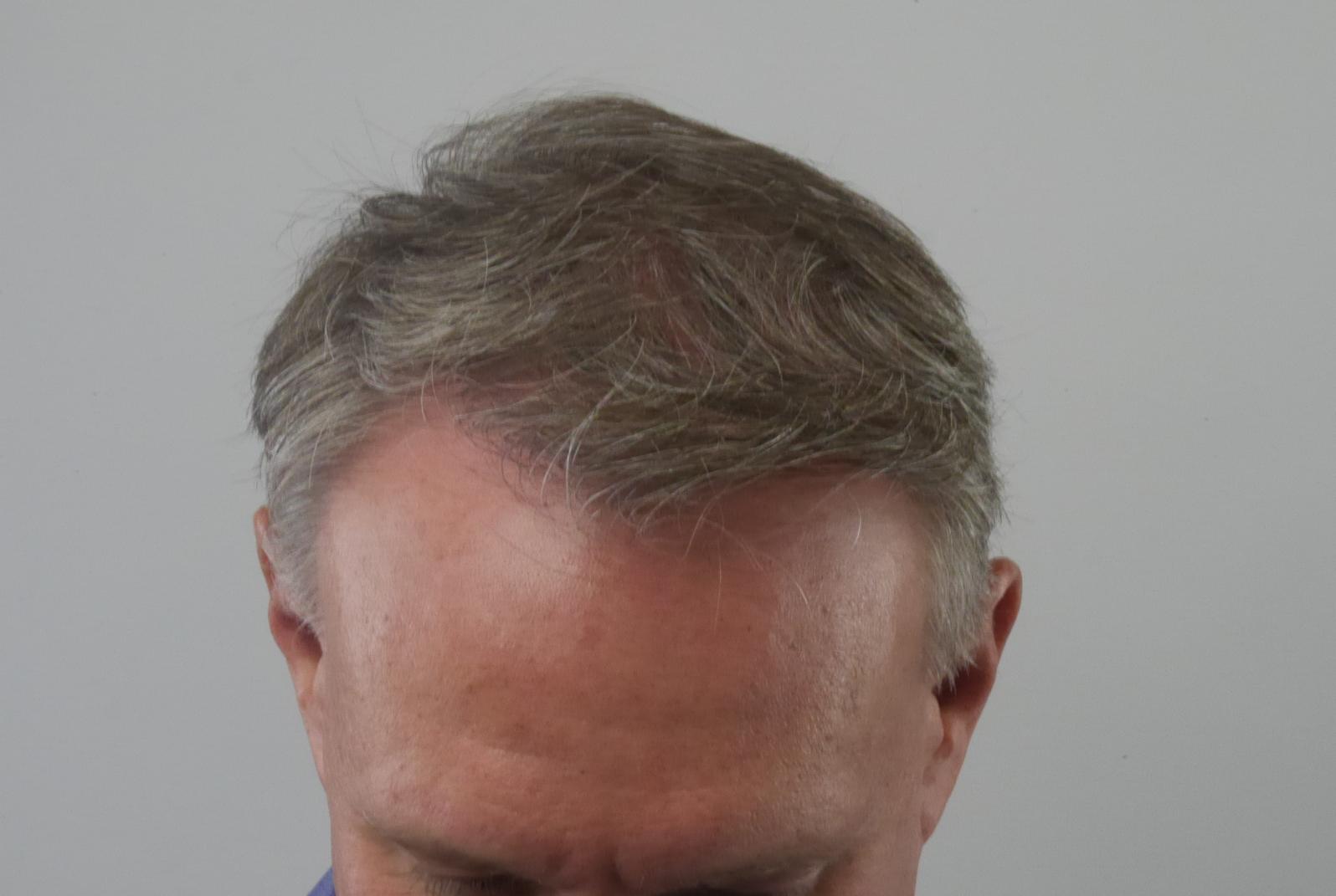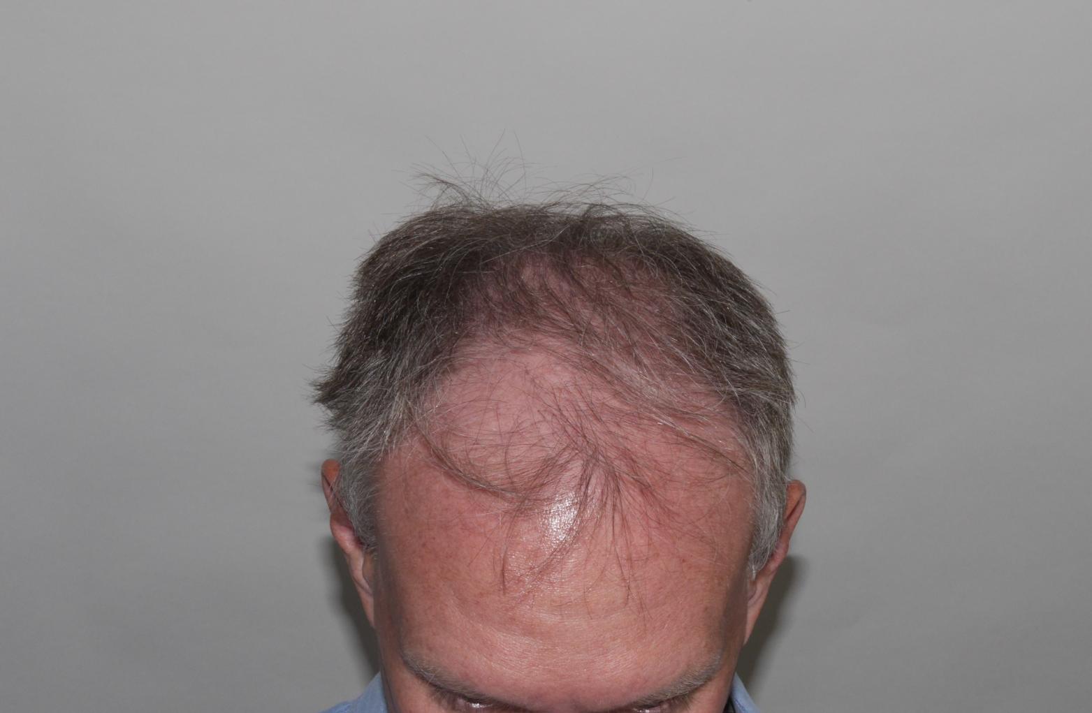 60 years old male. 3000 grafts FUT placed in frontal and vertex regions. 1 year post-op. Patient is very pleased with results but is considering having a second surgery to add density.