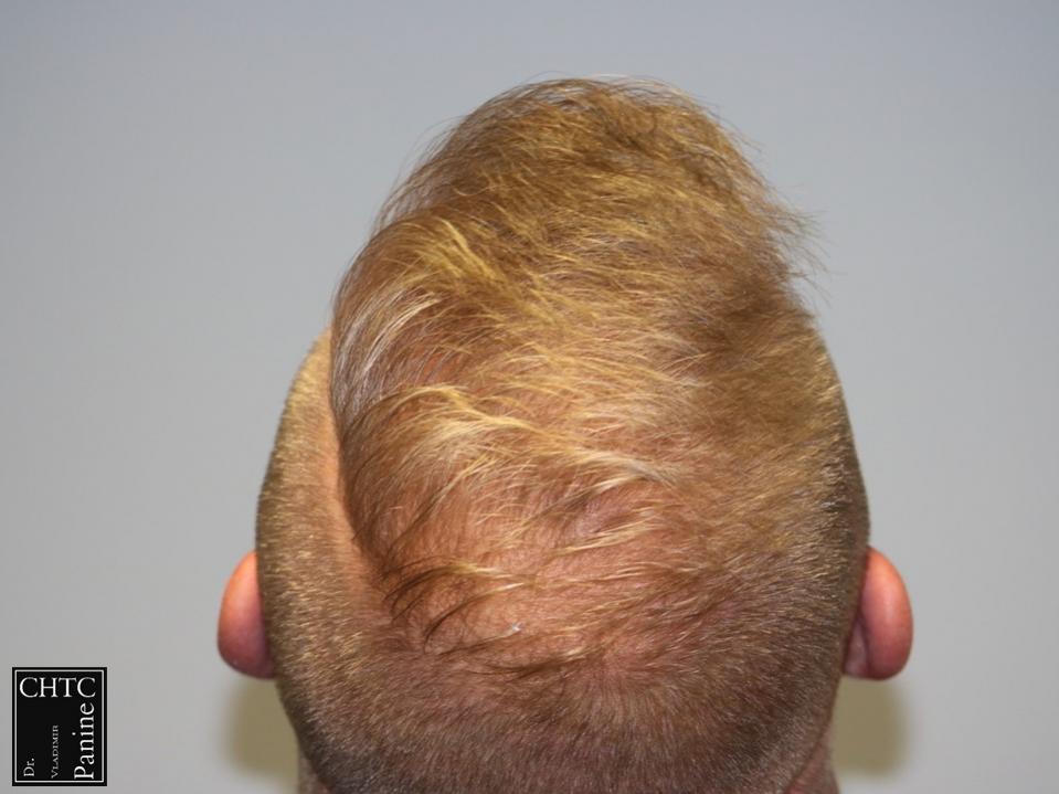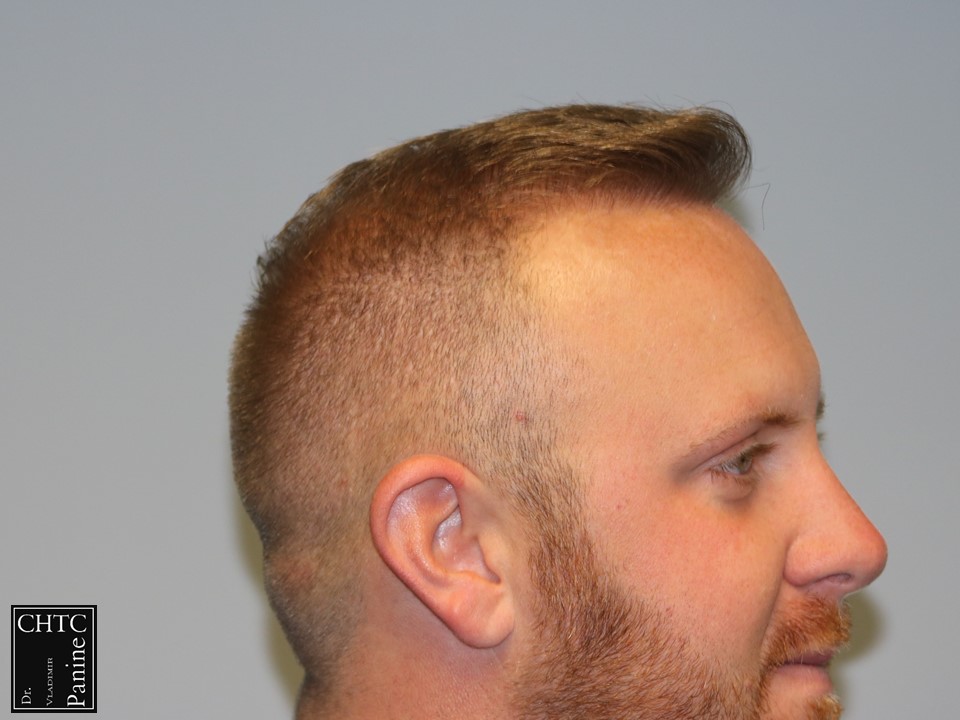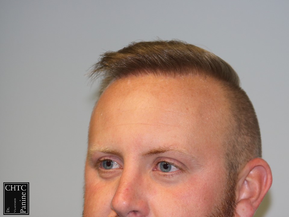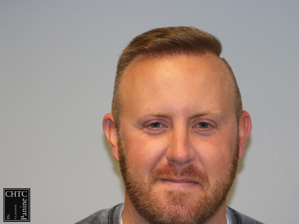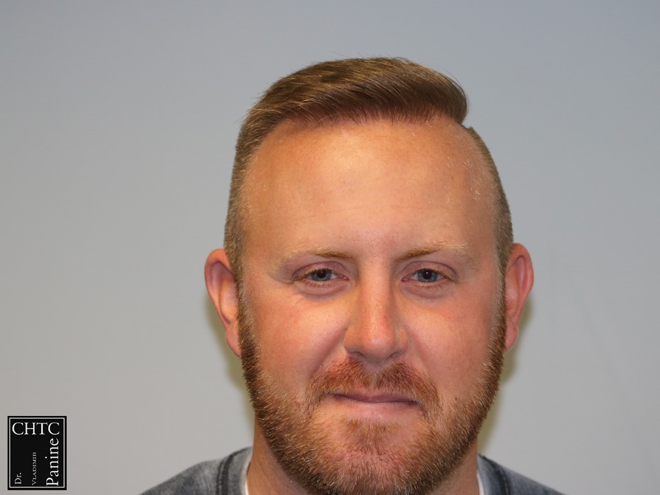This 30-year-old gentleman had a hair loss pattern similar to a class 4v on the Hamilton Norwood hair loss scale. His goal was to rebuild his hairline and add density to the frontal 1/3-1/2 of his scalp. Taking his age and hair loss into consideration we came upon an agreement for what would suite his expectations. After establishing his medical history and understanding the progression of his hair loss, I diagnosed his condition as Androgenetic Alopecia (male pattern baldness), ruling out any other possible dermatological or medical conditions which can cause hair loss. The patient’s goal was well suited to his needs and therefore I planned the surgery accordingly. I wanted to reconstruct a hairline that would be suitable for him as he continued to age. A total of 2,861 grafts were used. I used a significant amount of single hair follicular units which allowed me to create a very natural hairline. This action will allow him to comb his hair without anyone detecting that he has had anything done. These are his results 1 year post-op.