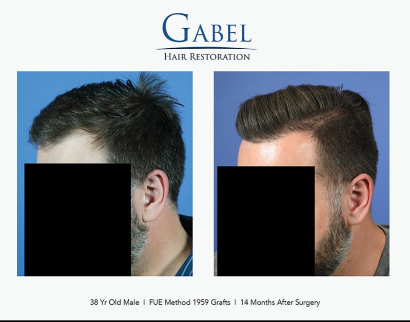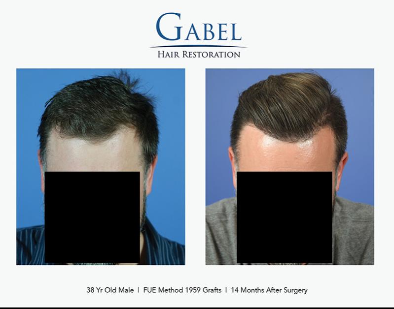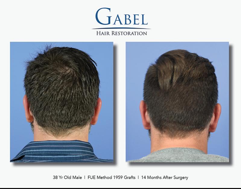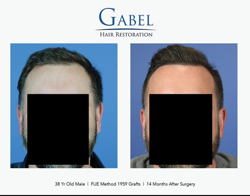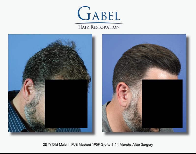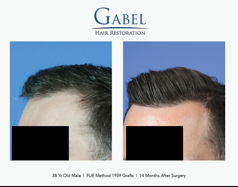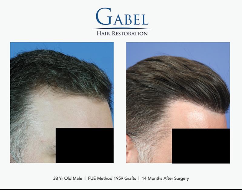 This patient is a 38-year-old gentleman who desired to increase density in the hairline and frontal zone of the scalp. He wanted this to follow his native hairline and not alter his appearance significantly. He does not have a family history of hair loss and is currently on oral and topical medications to maintain his native hair. His desire was very conservative: he wanted to bring down the frontal hairline about 1 cm and increase the density in the frontal area. The hair quality in the donor area was excellent, and he had no intentions of shaving his head in the future.