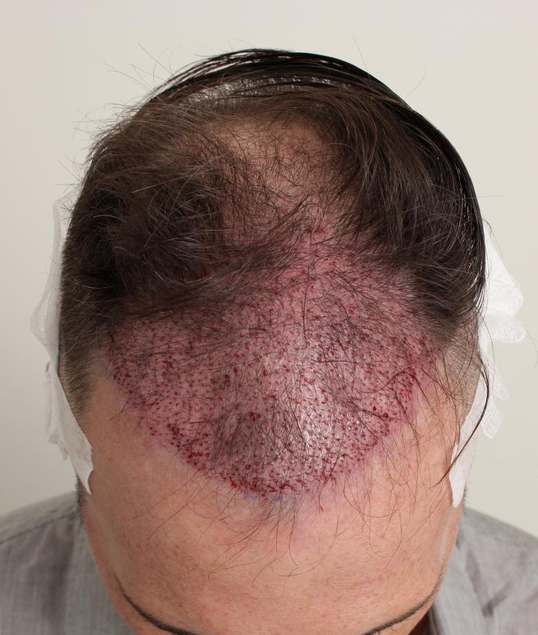 Initial FUE session focused on the frontal region.