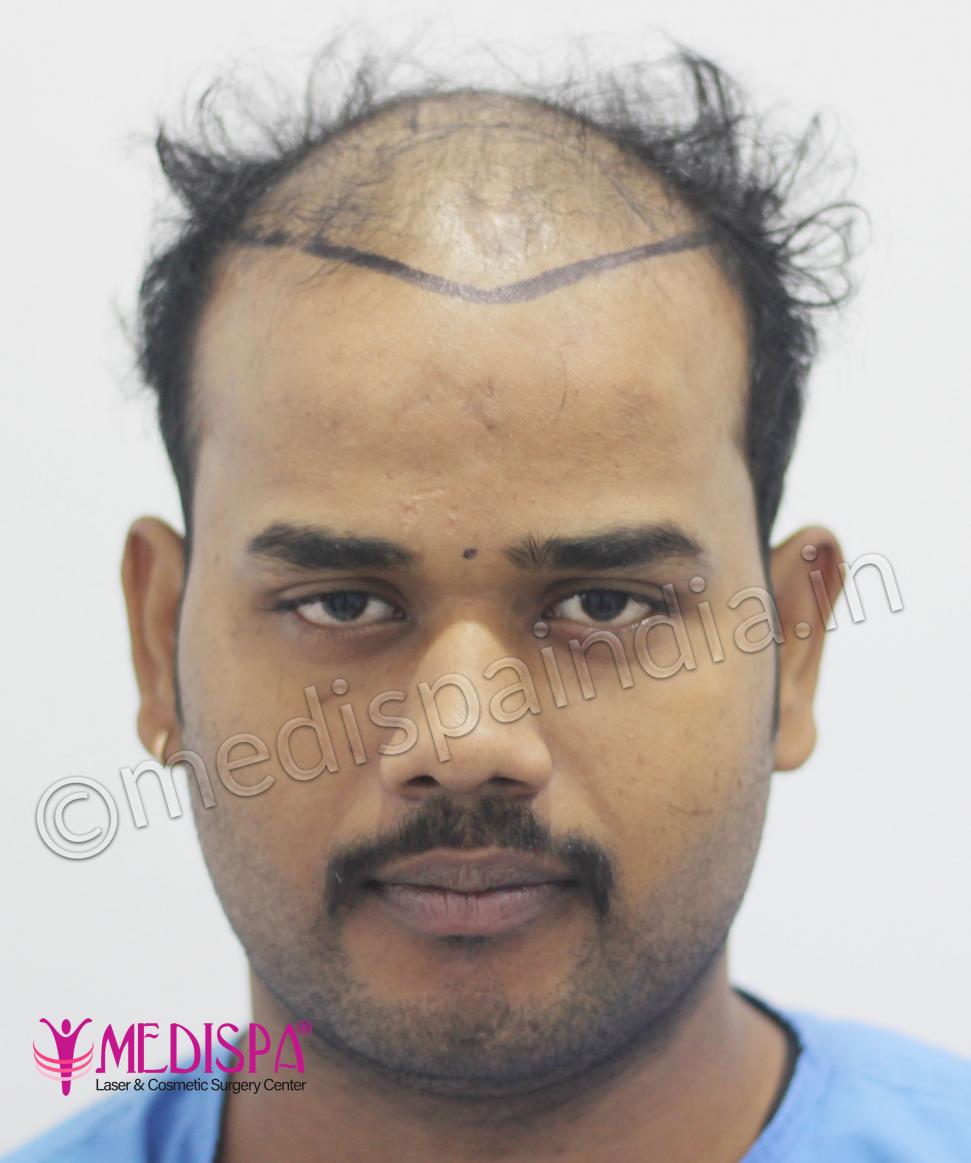 A 31 years old patient, suffering from genetic baldness.