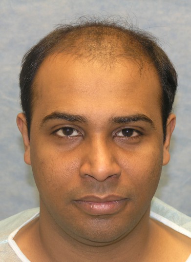 Bernstein Medical - Center for Hair Restoration Patient UAR is a Norwood Class 6 with slightly wavy, black hair and a donor density of 1.5 hairs/mm2. He had one hair transplant consisting of 2,336 follicular unit grafts. Photos were taken before and then one year after the hair restoration.