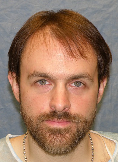 Bernstein Medical - Center for Hair Restoration patient GEL is a Norwood Class 4A with straight brown hair and a donor density of 2.5 hairs/mm2. He had one hair transplant to the frontal area consisting of 2,010 grafts. Photos were taken before and then one year after the hair restoration.