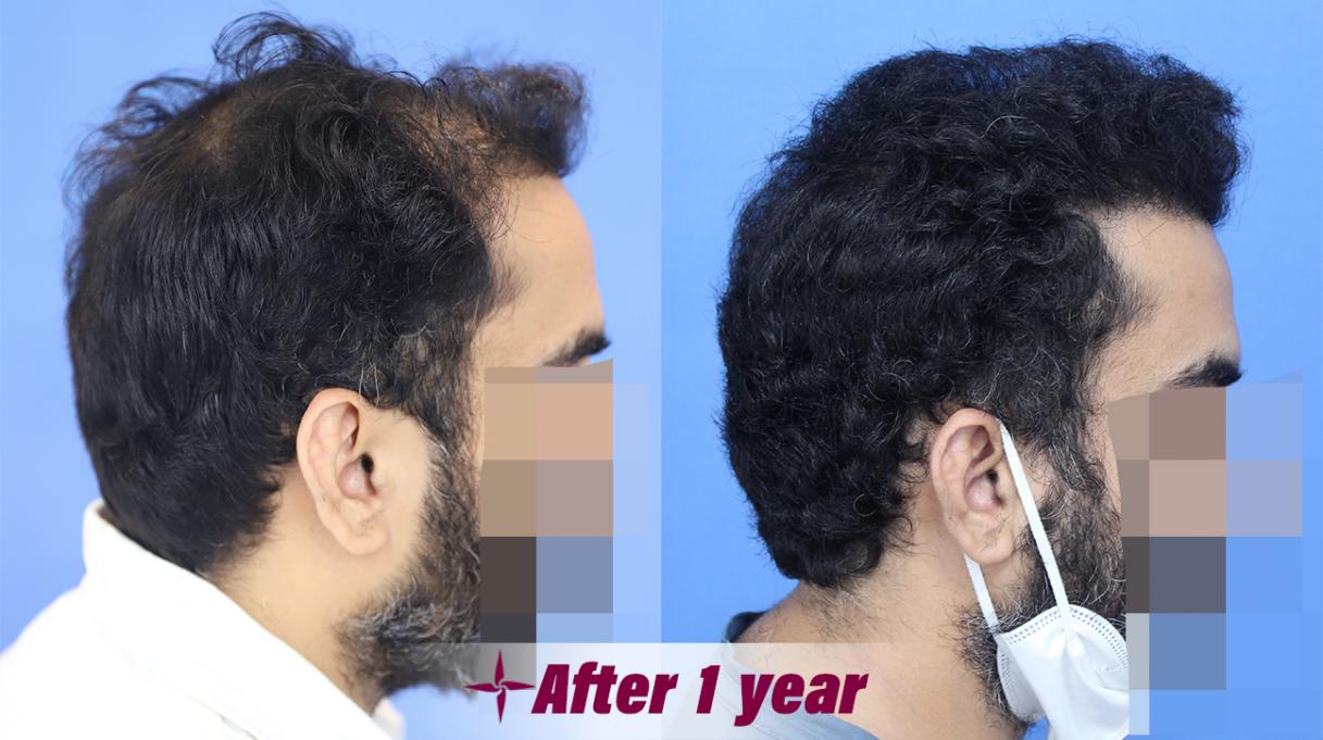 He had a complete look change by the 9th month. And even at 1 year, he has absolutely amazing results. He is also taking medications for his pre existing hair.