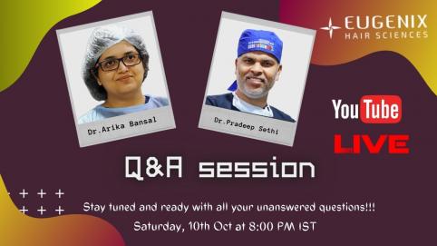 We are pleased to inform you that Dr Arika Bansal & Dr Pradeep Sethi shall be going live on YouTube on 10th October at 8:00 PM (IST). This is going to be a question and answer session wherein every hair loss patient is welcome to put forward their queries to be directly addressed by the doctors. You can ask them questions on anything related to hair. They will further be discussing the modern updated hair transplantation procedures, aesthetic hairline creation, failed/repair procedures, grade 7 cases, beard hair transplants, and many more subjects. We are welcoming every single potential patient for a live Q&A session.