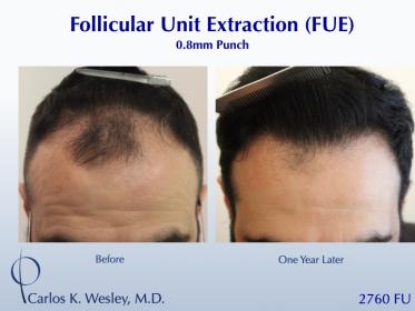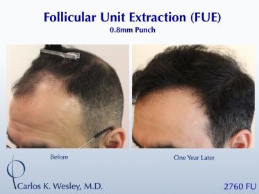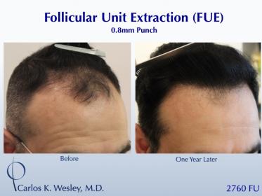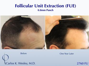 This 54-year-old man underwent a follicular unit extraction (FUE) session with Dr. Carlos K. Wesley in which a total of 2760 grafts were placed