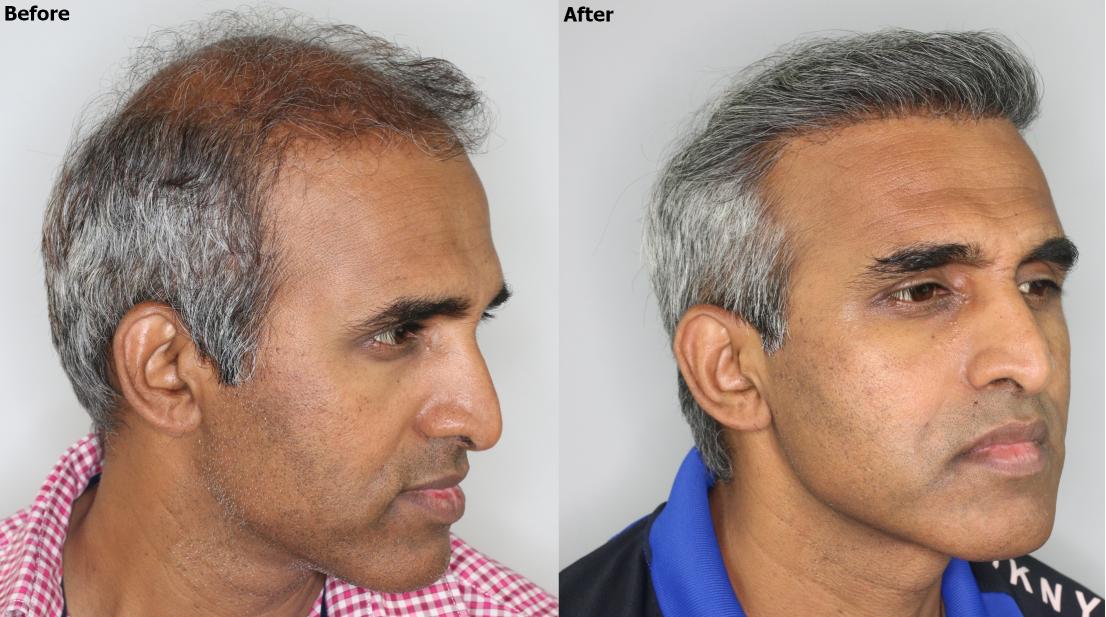 This patient in his late 40’s had 3,900 grafts + PRP in November 2019 with Dr. Baubac in our Beverly Hills Clinic. The patient desired to completely restore his hairline and frontal region at high density with full temple closure to frame his face and restore a full hairline. The after photos are at 11 months post op from his procedure with Dr. Baubac.