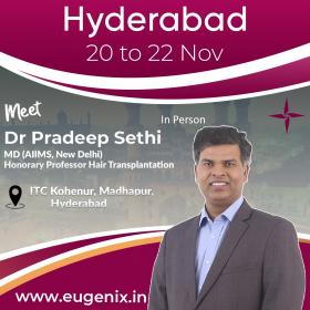 Eugenix*Hair Sciences is extremely pleased to announce that Dr Pradeep Sethi with his team, is going to be available in Hyderabad from 20th to 22nd November to meet prospective hair transplant patients in person.