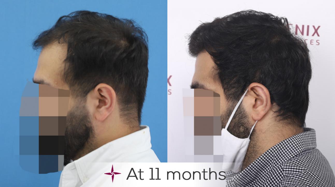A fantastic natural looking coverage of a grade 3 baldness, all extracted with great precision from the scalp, without disturbing the donor area to any great extent, and delivering an absolutely normal density, shows the experience and class of the surgeon. Craft at its best.
