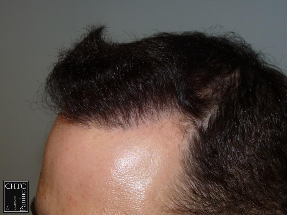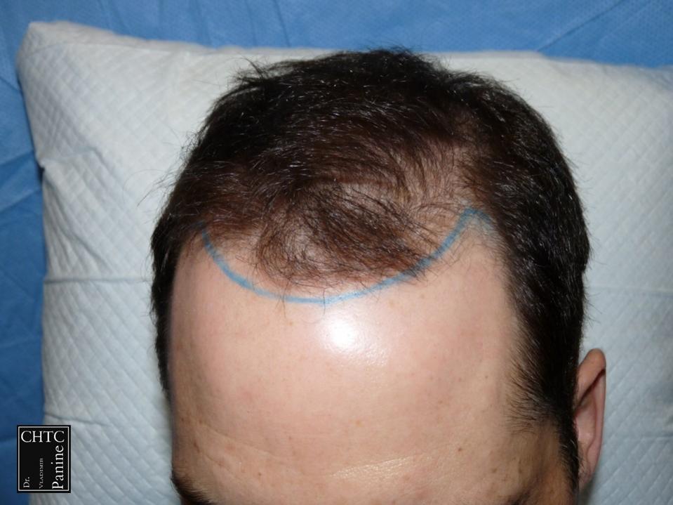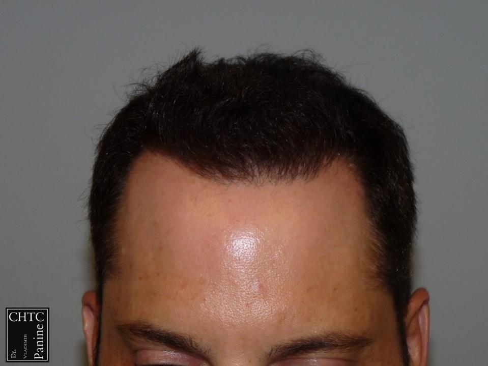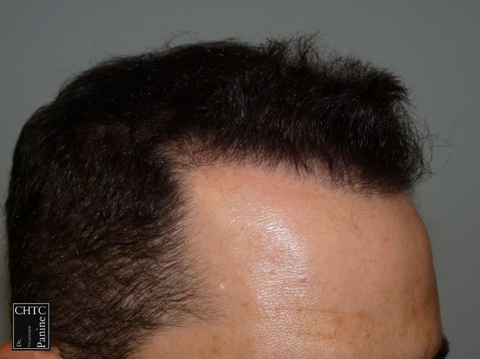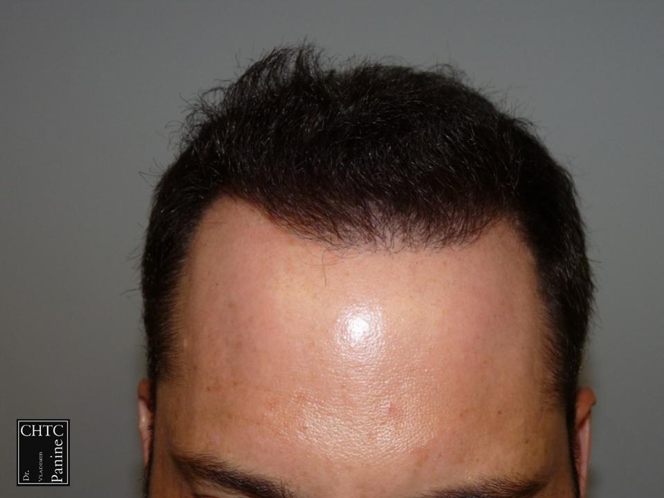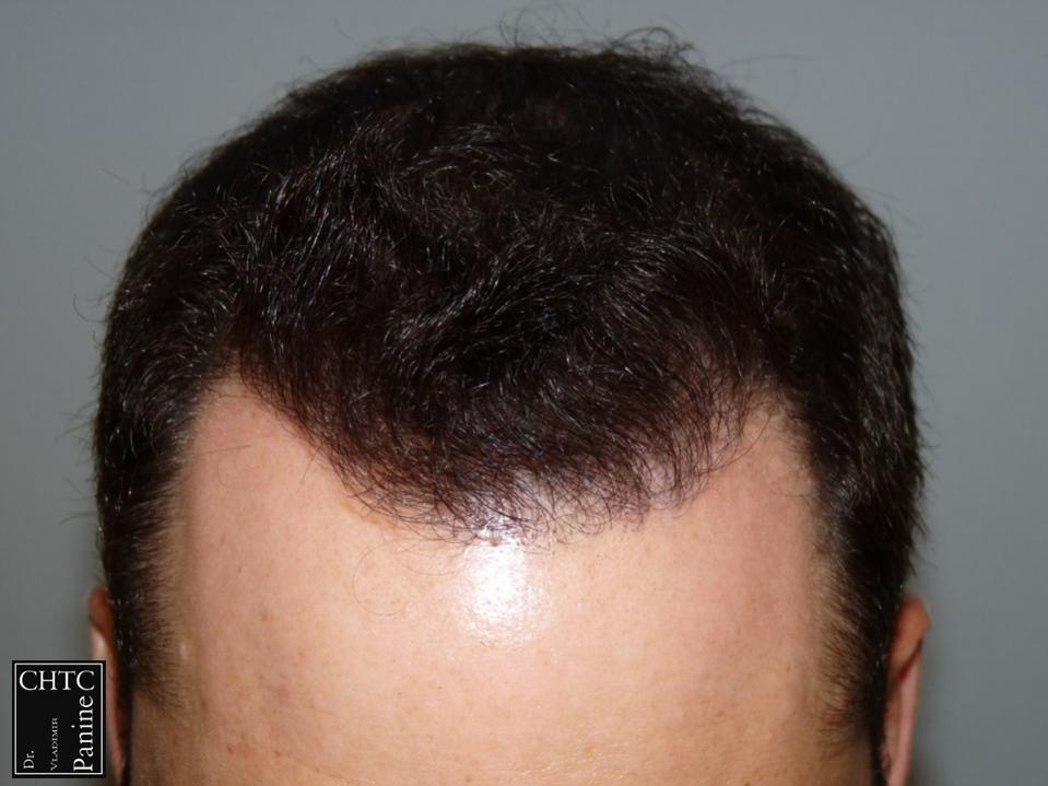 This 45-year-old gentleman had a hair loss pattern similar to a class 3v on the Hamilton Norwood hair loss scale. His goal was to rebuild his hairline and add density to the frontal 1/3 of his scalp.