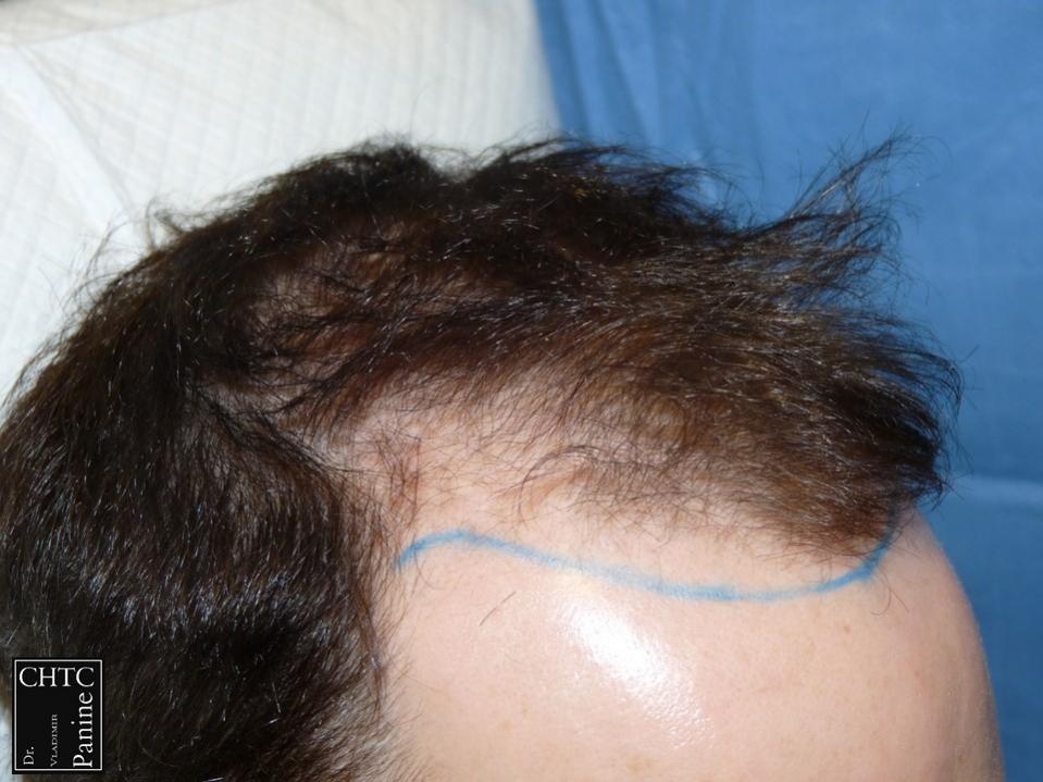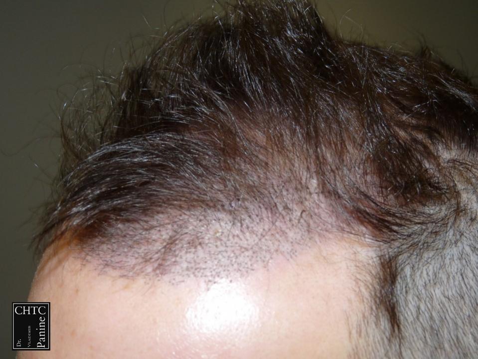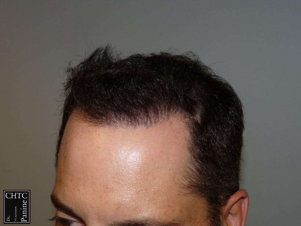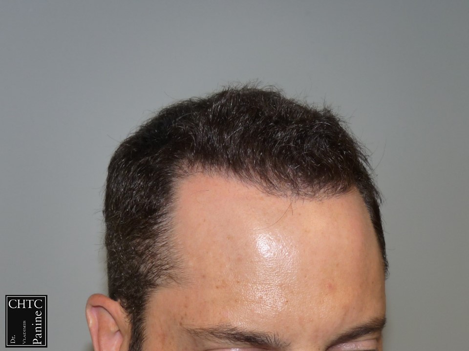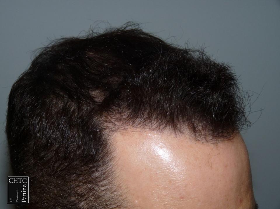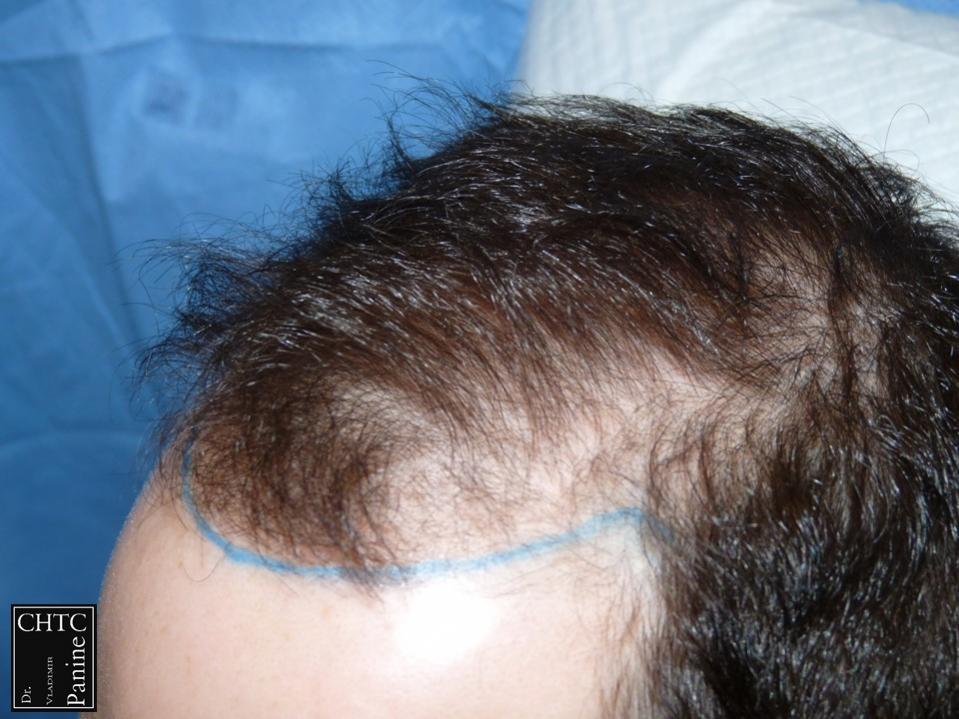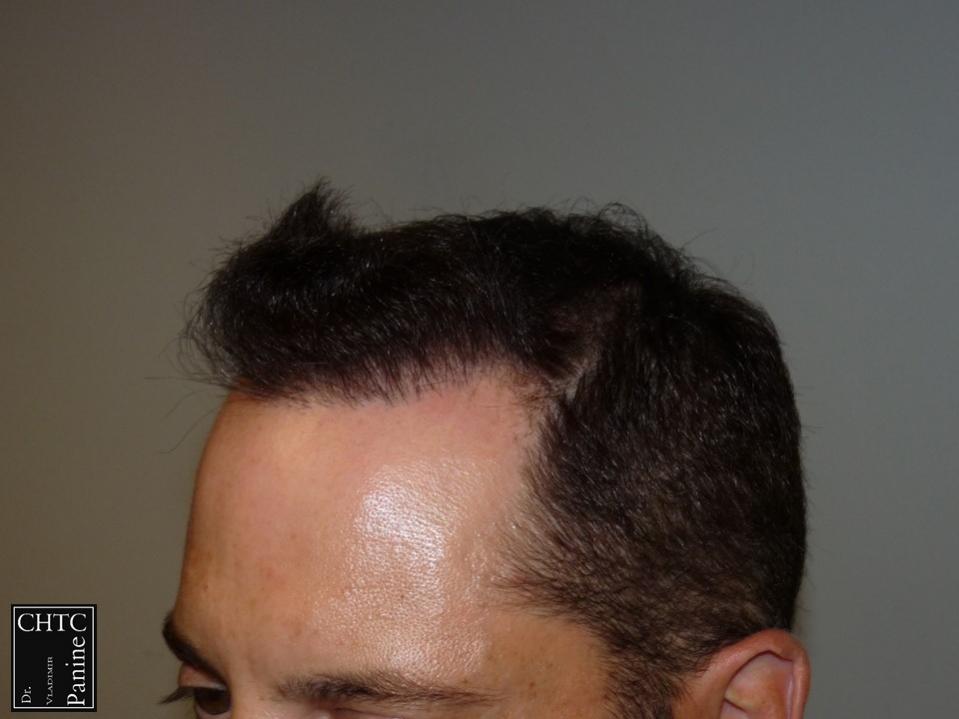 This 45-year-old gentleman had a hair loss pattern similar to a class 3v on the Hamilton Norwood hair loss scale. His goal was to rebuild his hairline and add density to the frontal 1/3 of his scalp.