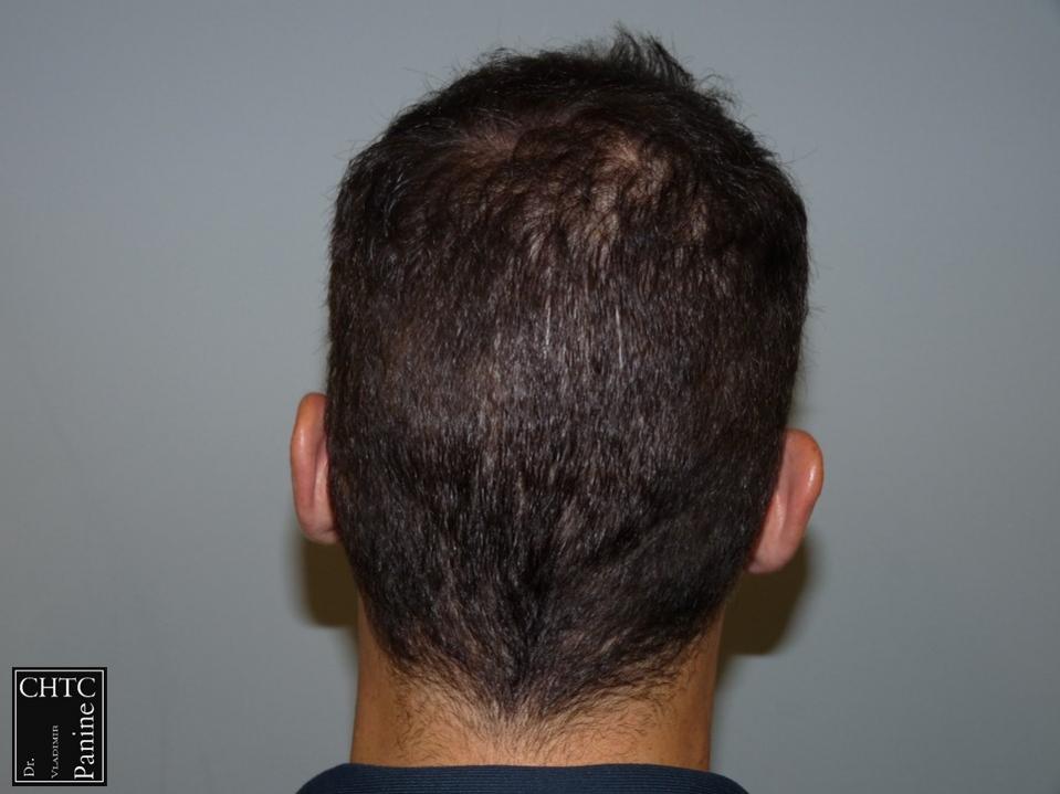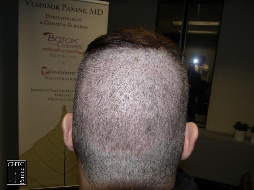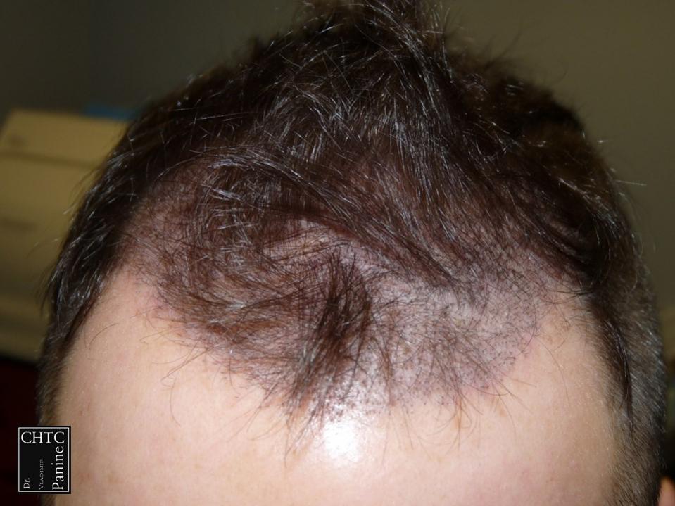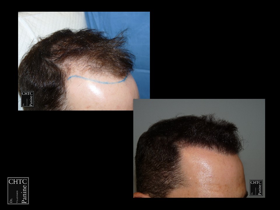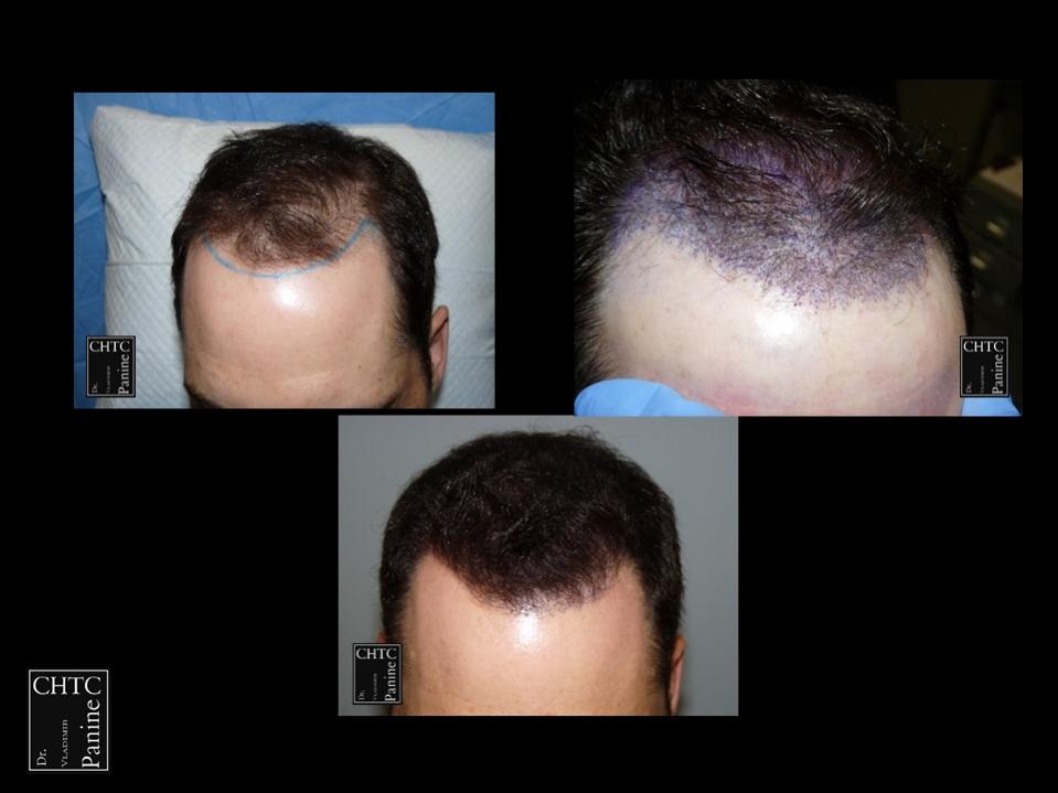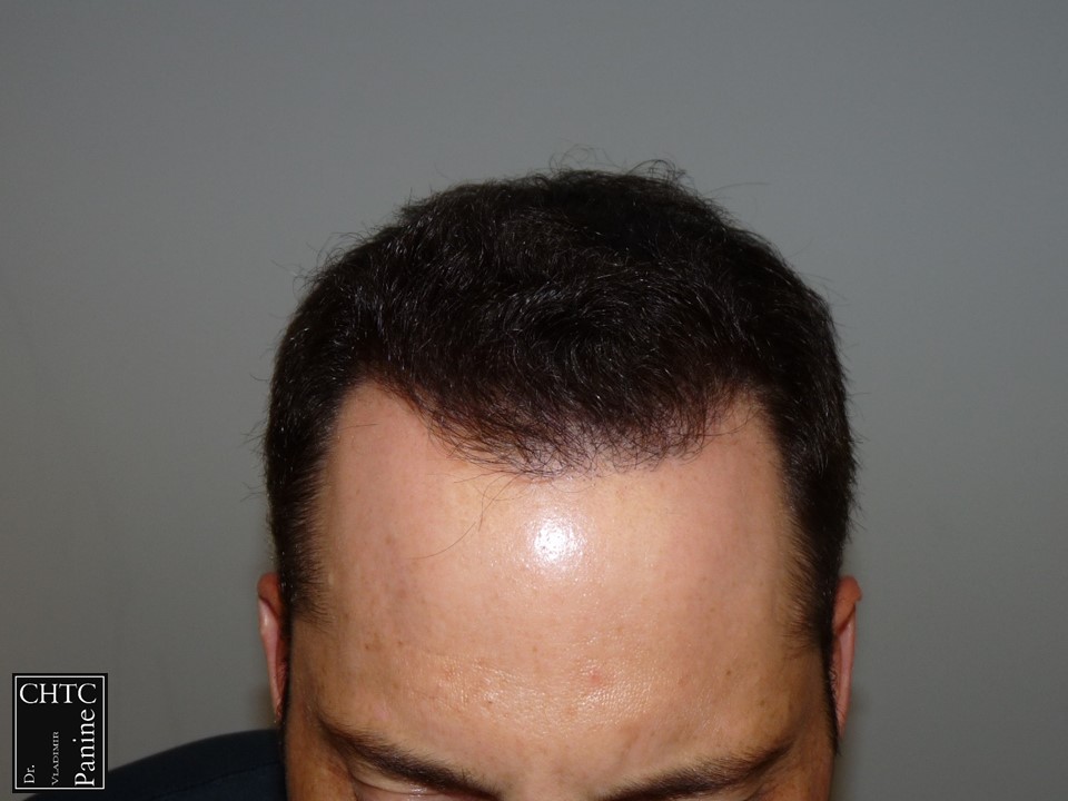 This 45-year-old gentleman had a hair loss pattern similar to a class 3v on the Hamilton Norwood hair loss scale. His goal was to rebuild his hairline and add density to the frontal 1/3 of his scalp.