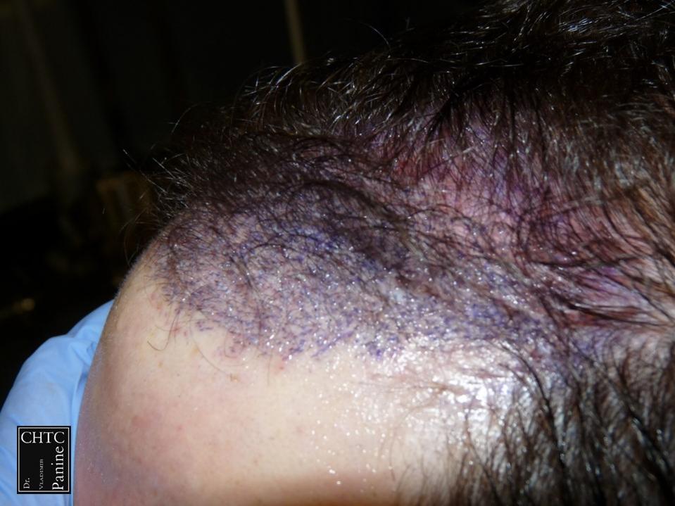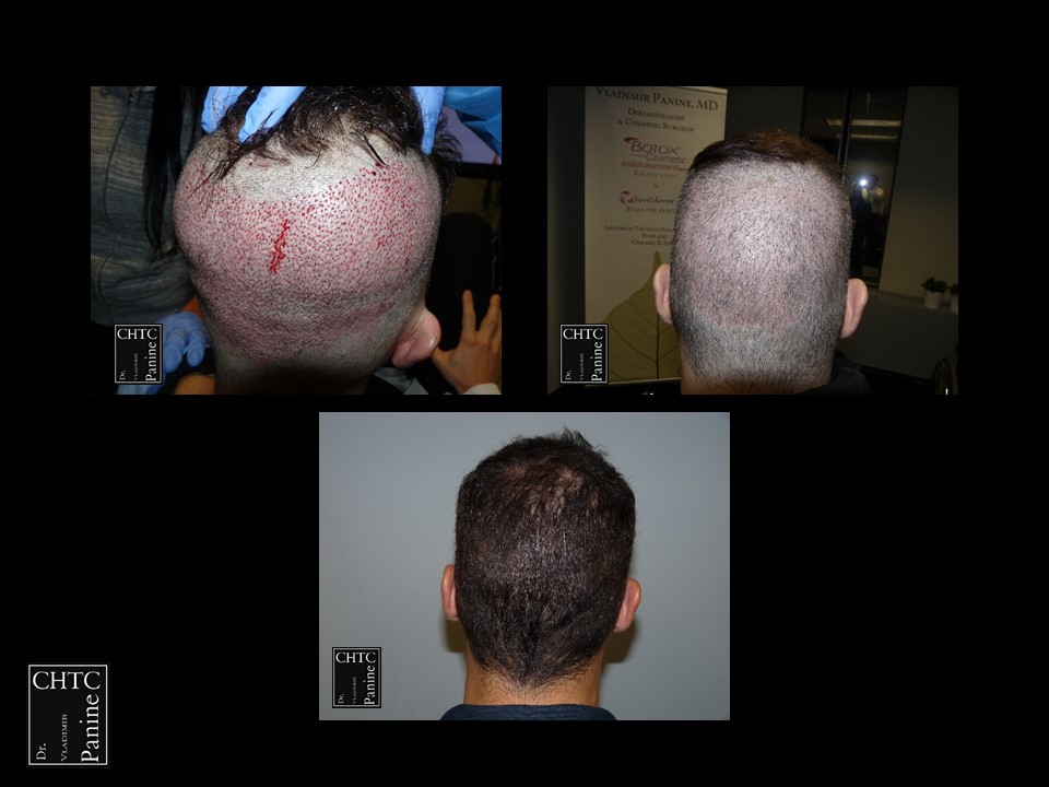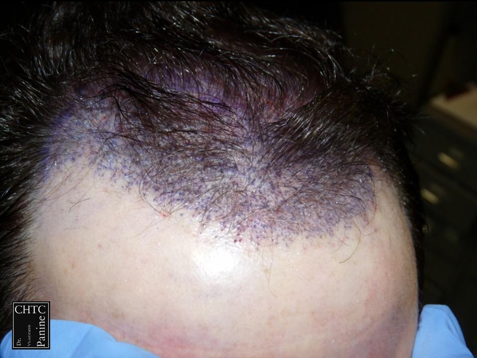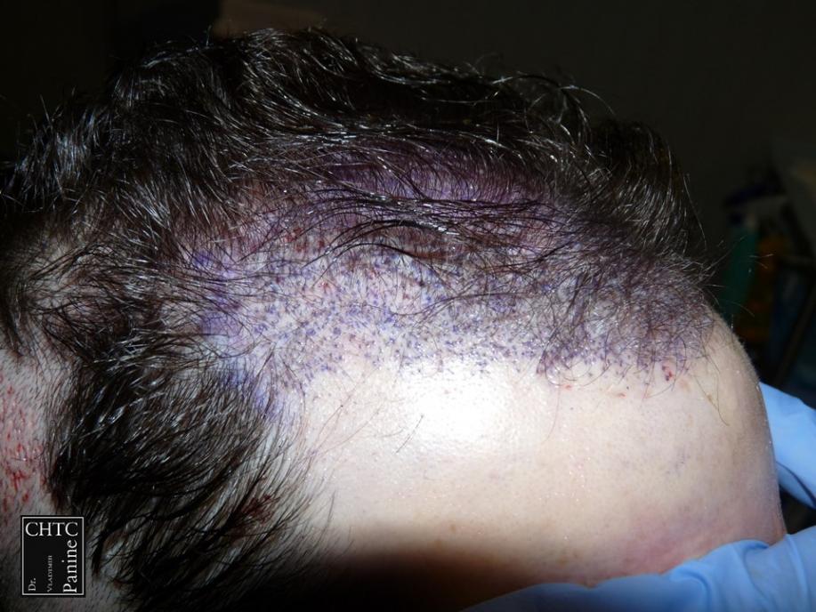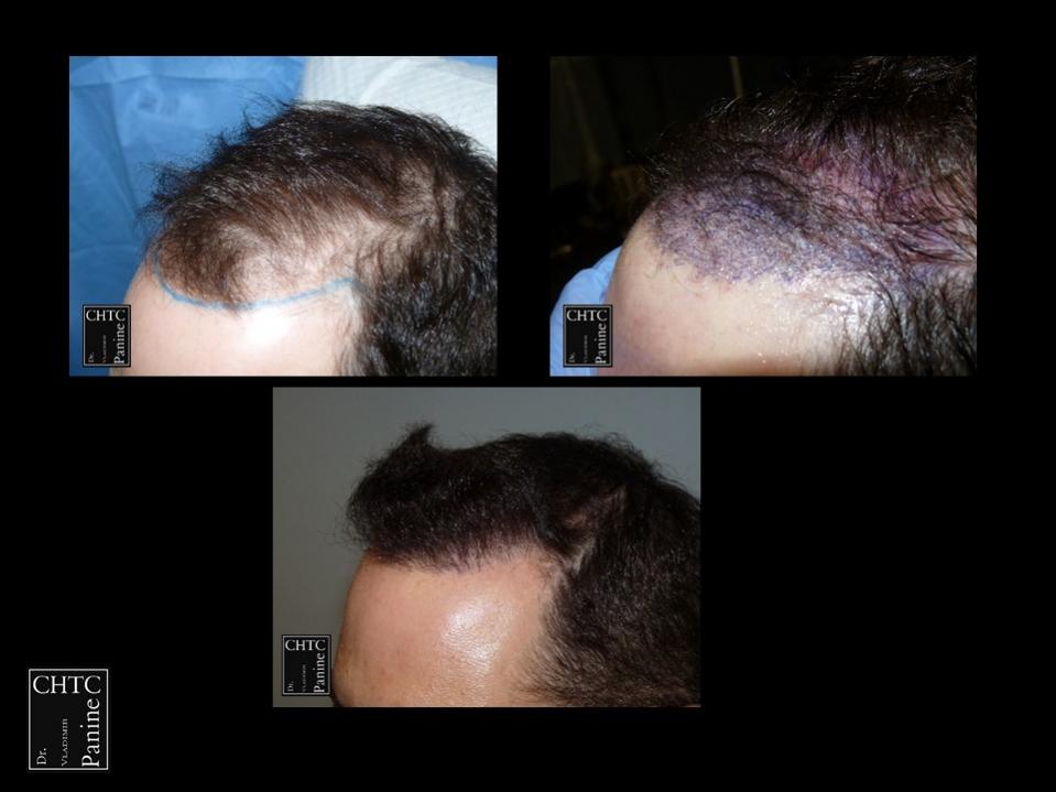 A total of 2,420 grafts were used. I used a significant amount of single hair follicular units which allowed me to create a very natural hairline. This action will allow him to comb his hair without anyone detecting that he has had anything done. These are his results at 1 week, 1 month and 10 months post-op.