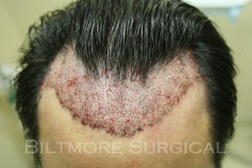 This patient is 1 yr post op. He received 2170 grafts in the frontal third and has done very well.