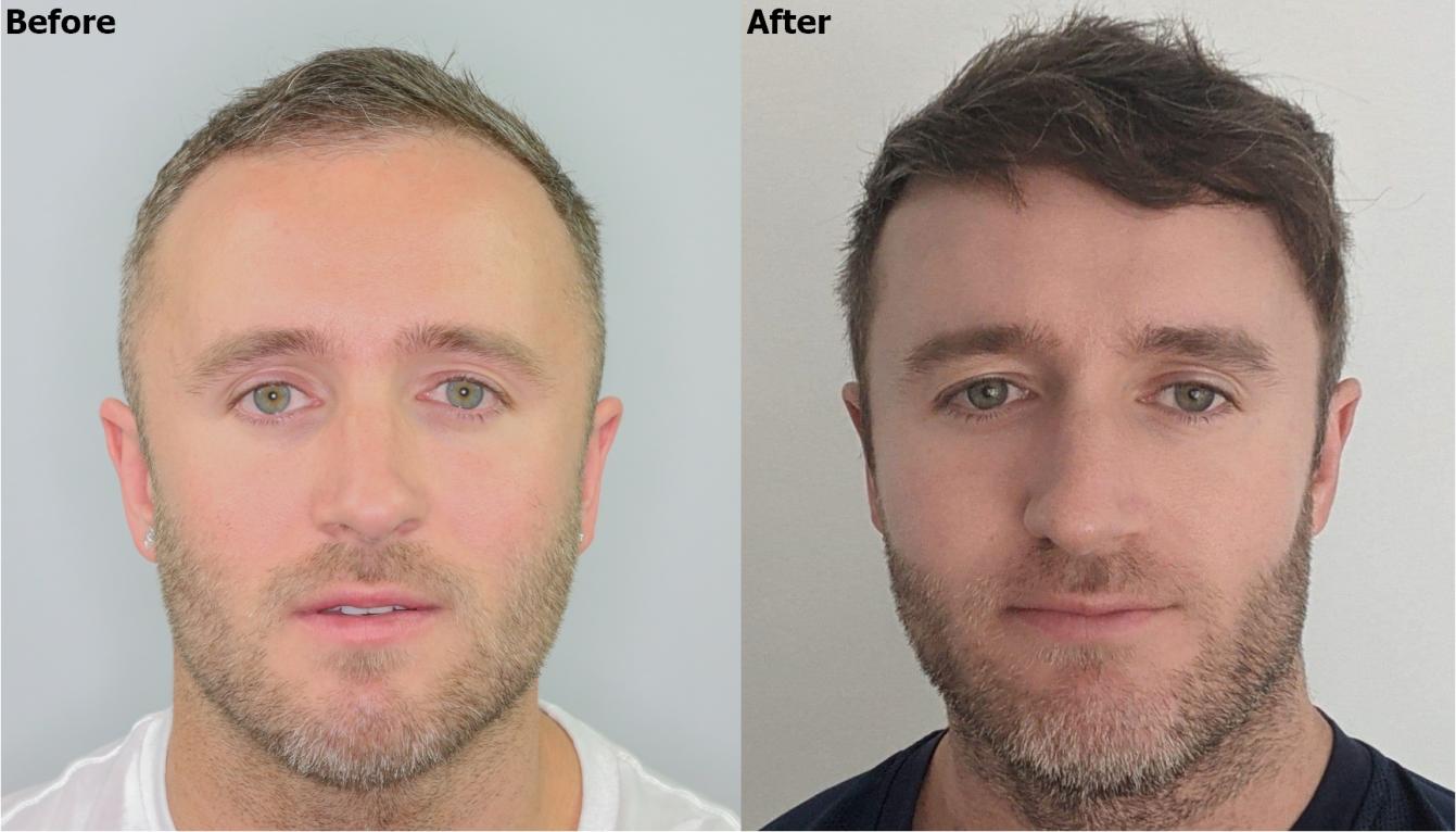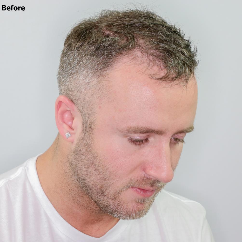 This patient had 2,200 grafts fue with Dr. Baubac in our Alvi Armani Beverly Hills Clinic in 2019 to restore his hairline. The patient is one year post op in his after photos. With his new fuller restored hairline, the patient can now grow his hairline and bangs longer in front, something he could not do before with his thinning hair and receded hairline.