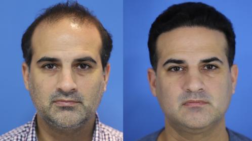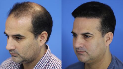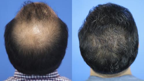 The 41-year-old had Grade VI baldness on the Norwood Hamilton Scale. For the total coverage of his scalp, we gave him 7300 grafts. He got 4500 grafts for his first sitting in the frontal half of his scalp. 2500 grafts were taken from the scalp donor and 2000 from the beard donor. In the second sitting, he went for 2800 grafts where 1700 grafts were from the scalp donor and 1100 grafts were from the beard donor. The two sittings were done 5 months apart. He had a complete look change by the 5th month itself. However, by the 10th month, his results were outstanding and his scalp was covered with dense and thick hair.