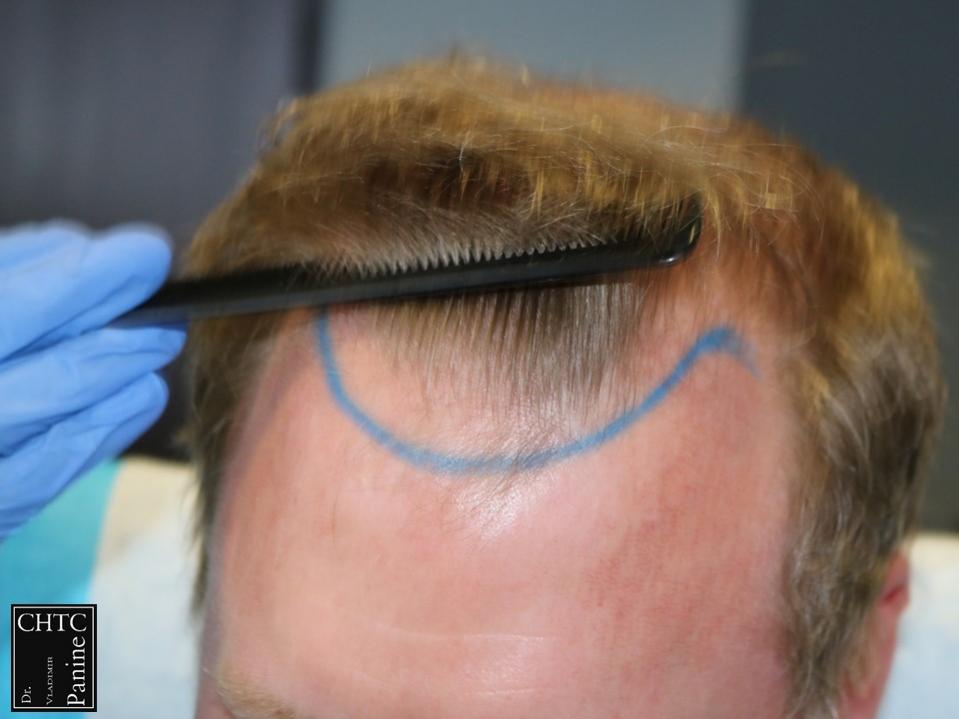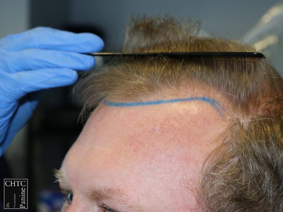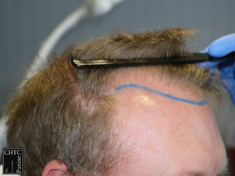 As I discussed his options with him, we agreed to reconstruct a hairline that would be suitable for him as he continued to age. Since the patient’s goal was well suited to his needs, I planned the surgery accordingly.