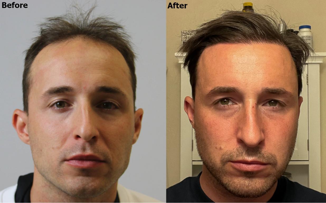 Here are after photos of his Dr. Baubac hairline 3 years post op. He had 3,000 grafts FUE