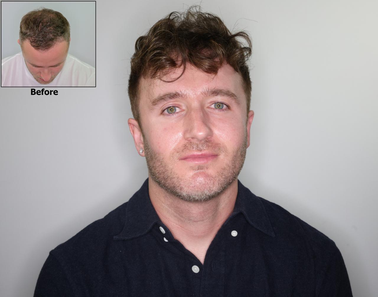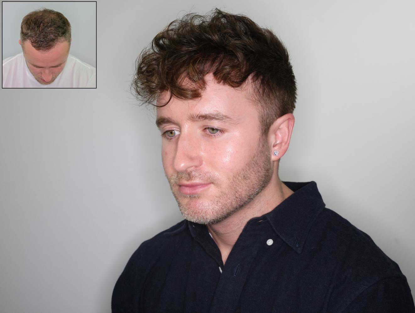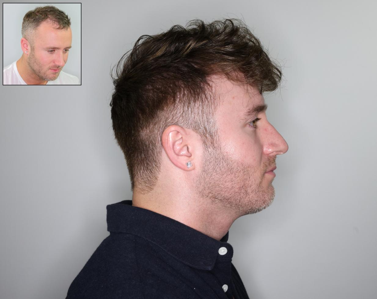 This patient had 2,200 grafts fue with Dr. Baubac in our Alvi Armani Beverly Hills Clinic in 2019 to restore his hairline. The patient is one year post op in his after photos. With his new fuller restored hairline, the patient can now grow his hairline and bangs longer in front, something he could not do before with his thinning hair and receded hairline.