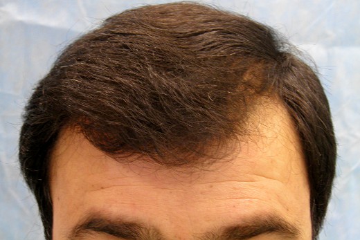 Bernstein Medical - Center for Hair Restoration patient BWM is a Norwood Class 4 with straight, medium weight, dark brown slightly wavy hair. The hair transplantation pictures show the results after one follicular unit hair transplant session of exactly 2,900 grafts.